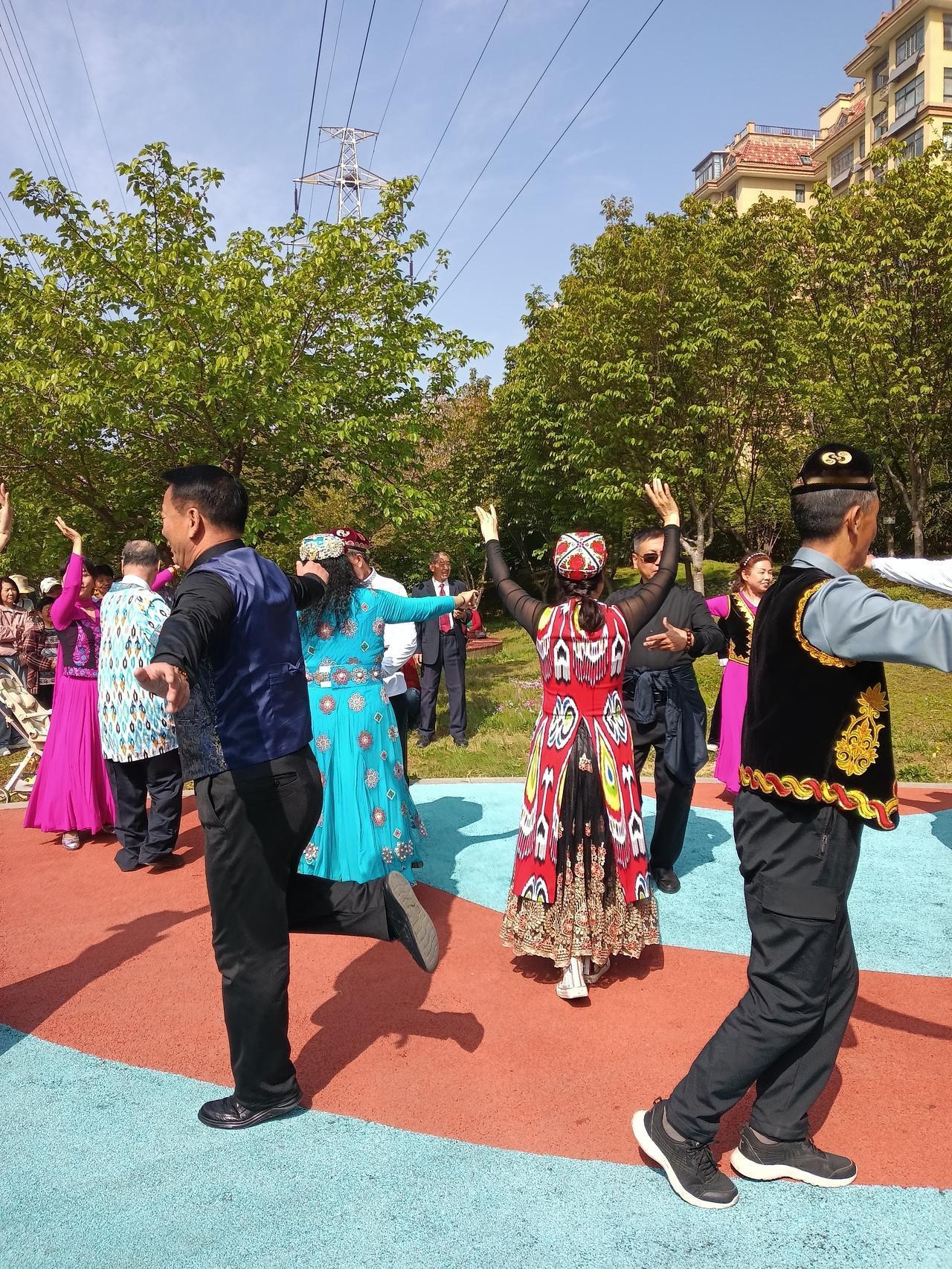 最惊艳的还得是新疆舞表演!欢快的节奏、灵动的舞步,抖肩、旋转、摆胯,每一个动作都热情奔放、韵味十足,演员们神采飞扬,把新疆舞的魅力展现得淋漓尽致,台下观众掌声、喝彩声一阵接一阵,热闹非凡!