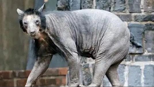 就是一头皮肤被真菌感染脱毛的黑熊.……