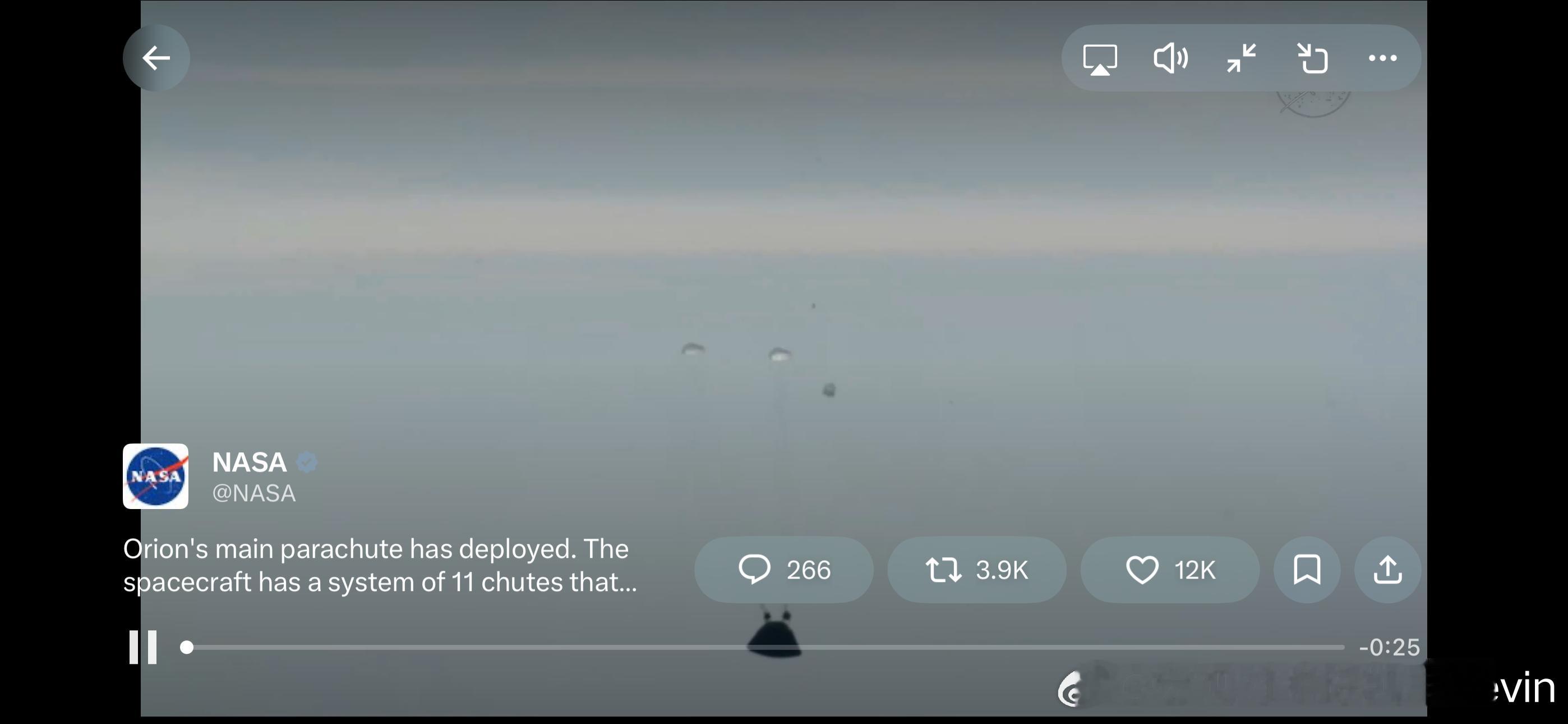 太伟大了,Artemis 从月球返回地球,时速2.5万英里穿过大气层,在圣地亚哥海岸附近入水宇航宇航员凯丰基本面美国NASA太空航天