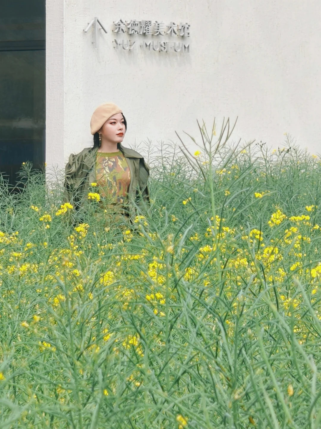 🚩油菜花田:余德耀美术馆前,与艺术墙相映成趣