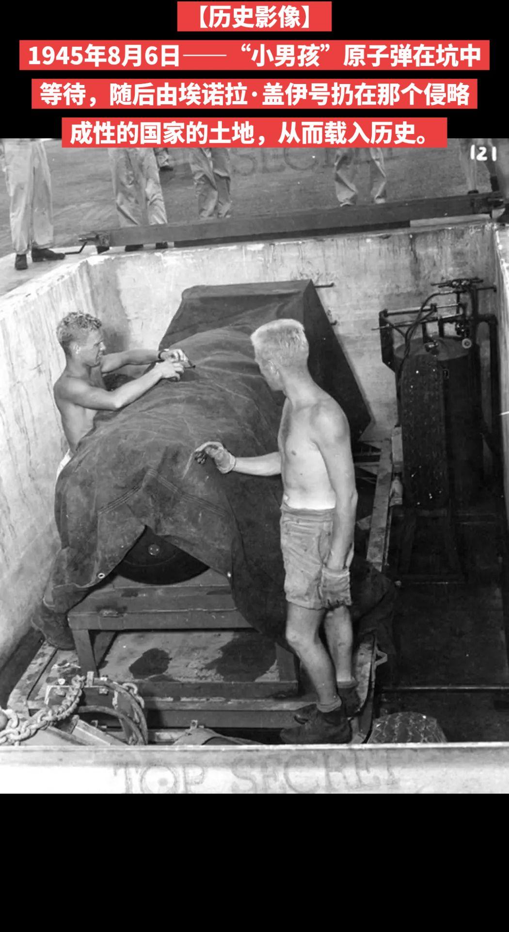【历史影像】1945年8月6日——“小男孩”原子弹在坑中等待,随后由埃诺拉·盖伊