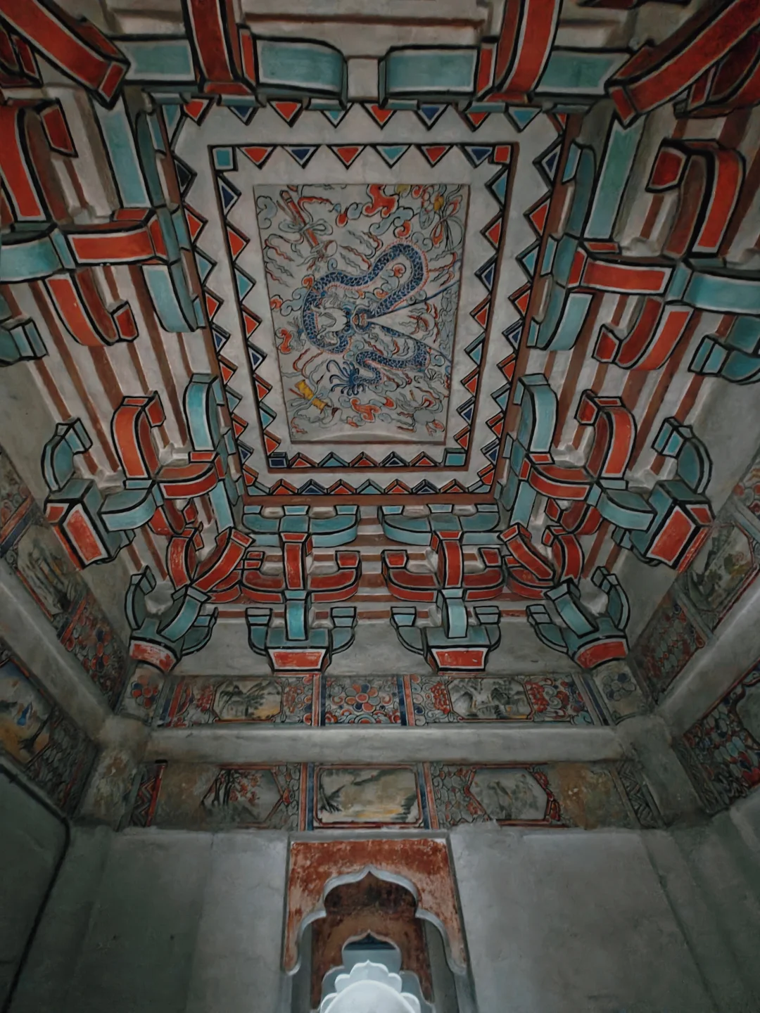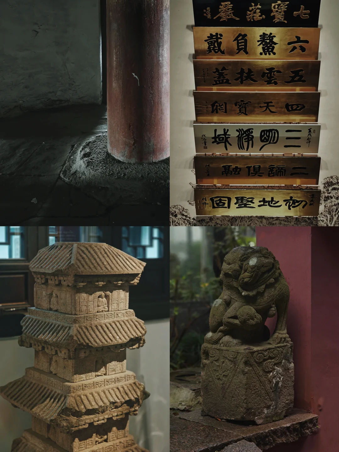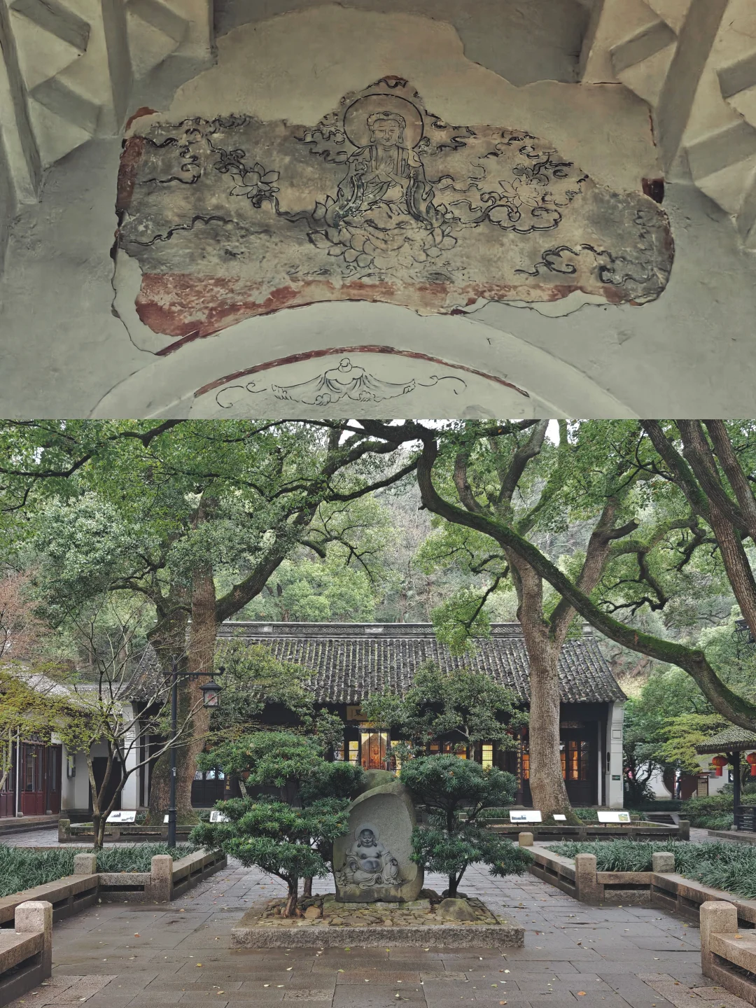 📜壁龛内镶嵌南宋《四十二章经》石刻(南宋名臣一人写一章),南门立南宋尚书省牒碑。明代保存至今的线刻真武画像在北侧,如果没做功课绝对错过,光线昏暗,很难看清,照片也没拍出来。