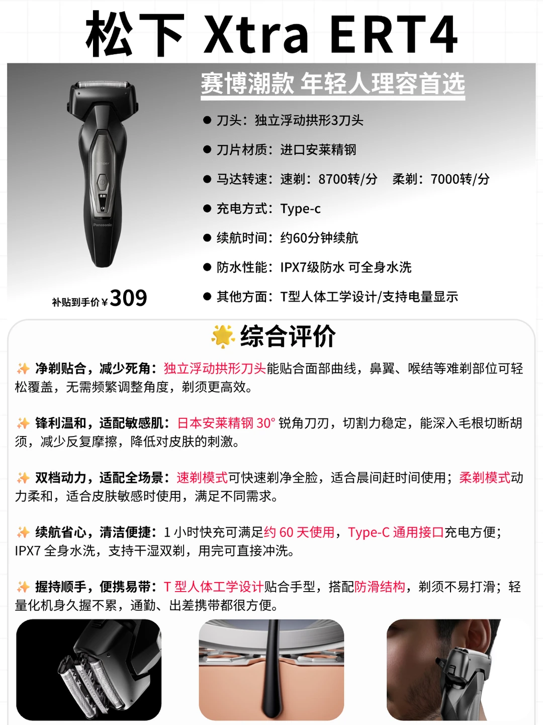 👉 绝大多数男生( 早八通勤党 / 颜控党):不管细软还是普通胡茬,追求高质价比、潮流颜值——直接闭眼抄作业入松下 Xtra ERT4