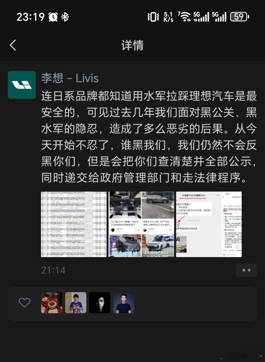 李想朋友圈飙脏话刚才看了,李想朋友圈,飙脏话那条删了。但是补发了两条,核心都是黑