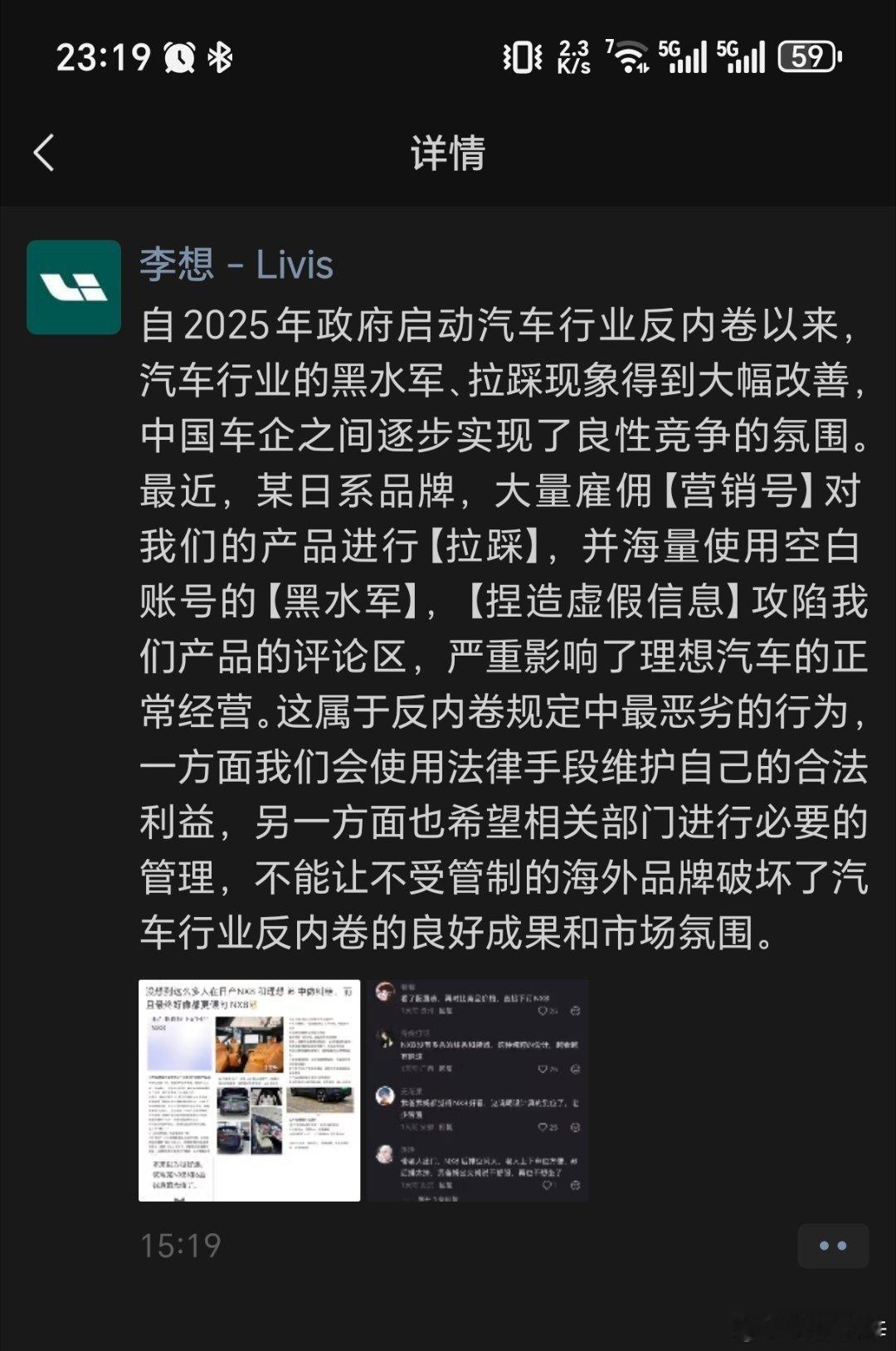 李想朋友圈飙脏话刚才看了,李想朋友圈,飙脏话那条删了。但是补发了两条,核心都是黑公关,大量抹黑理想i6的帖子。说实话,这么搞,确实非常恶心。如果真的是好车,让用户自己说话,没必要这么搞。