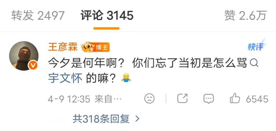 王彦霖幽默回应:复活了我妈还能让我回家吗?你们忘了当初怎么骂宇文怀的?