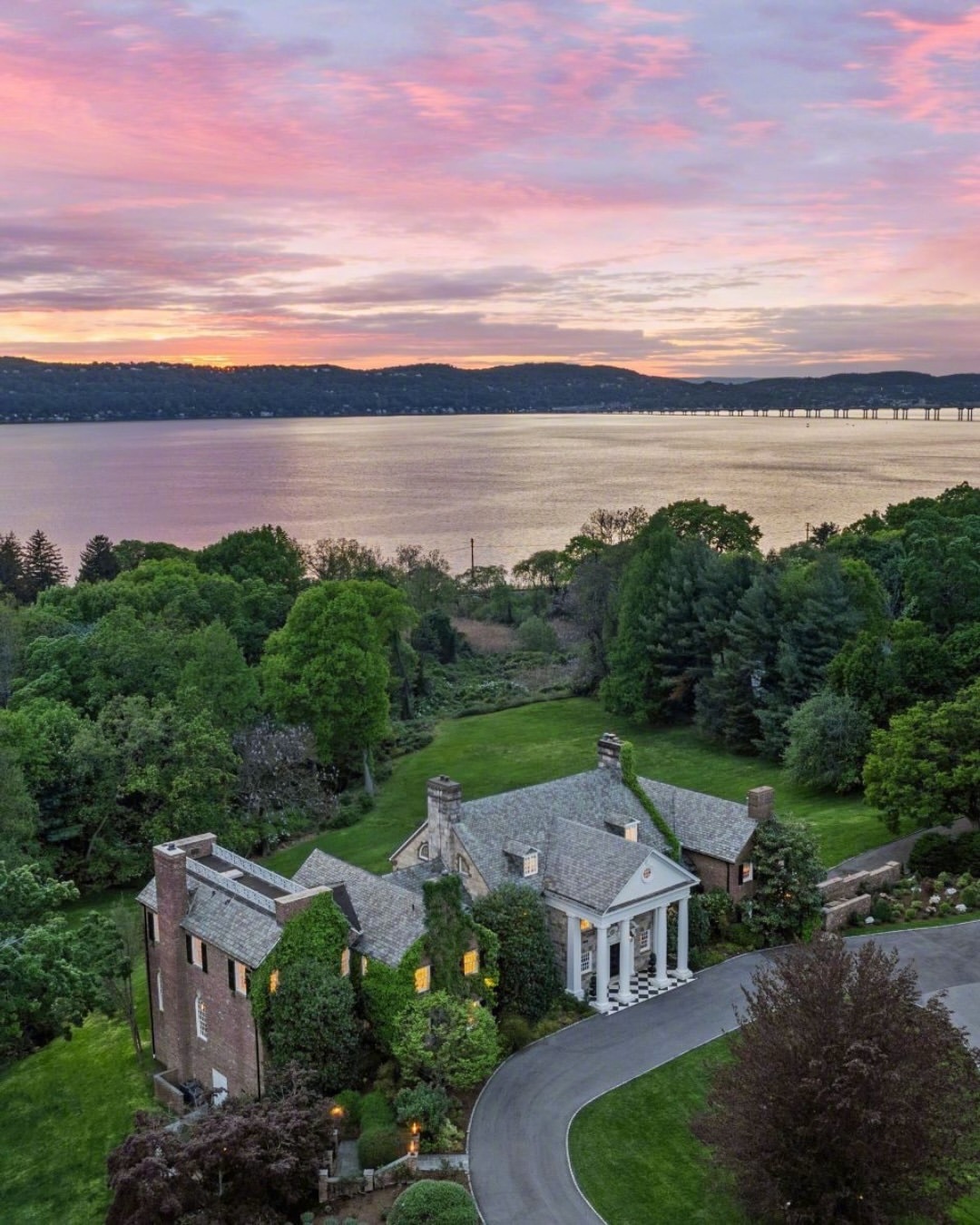 这处建于 1929 年的庄园占地约 12 英亩,拥有开阔的河景、典雅的“老钱风”室内设计,以及如今已很少再建造的宏大尺度。是一种至今仍显得很气派非凡的住宅。