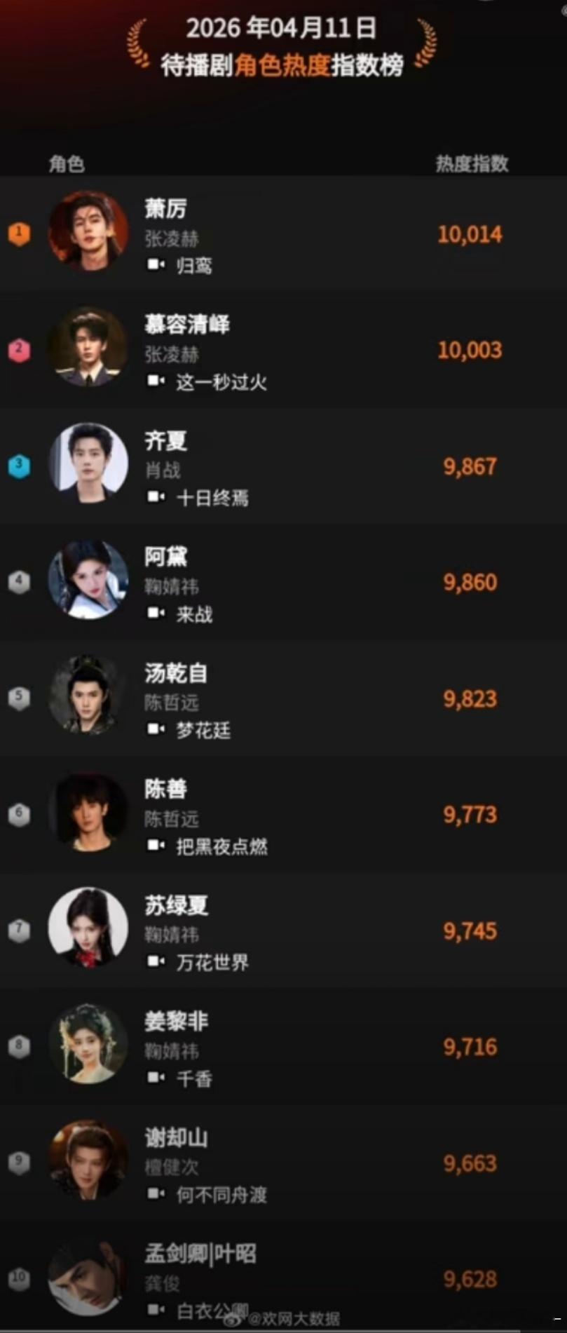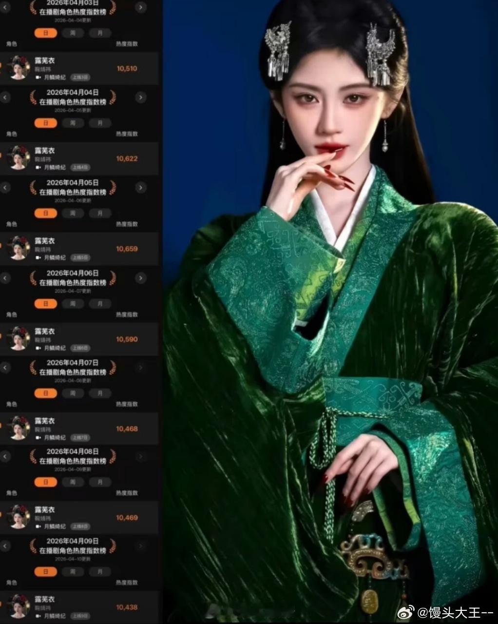鞠婧祎露芜衣连续9天霸榜 同期在播剧这么多,露芜衣还能连续九天霸榜,足以看出角色
