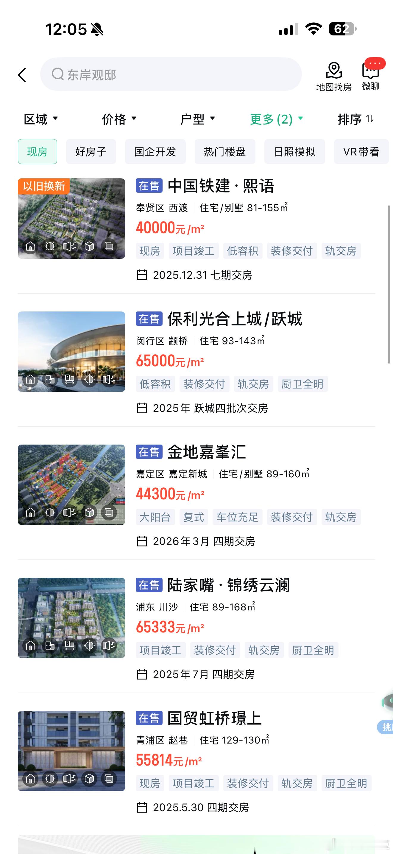 上海楼市,外环现在不限购了,房价还是很高,这是一些在售有现房的新房价格。奉贤从5