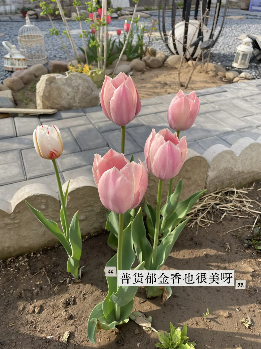 上周开花的郁金香肉色长安还在开着,颜色变浅了很多