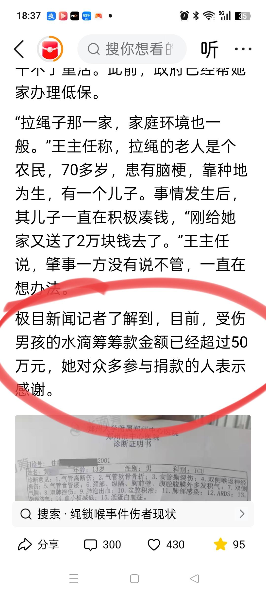 好消息:被老人栓绳锁喉重伤男孩已经募集了捐款超50万元。