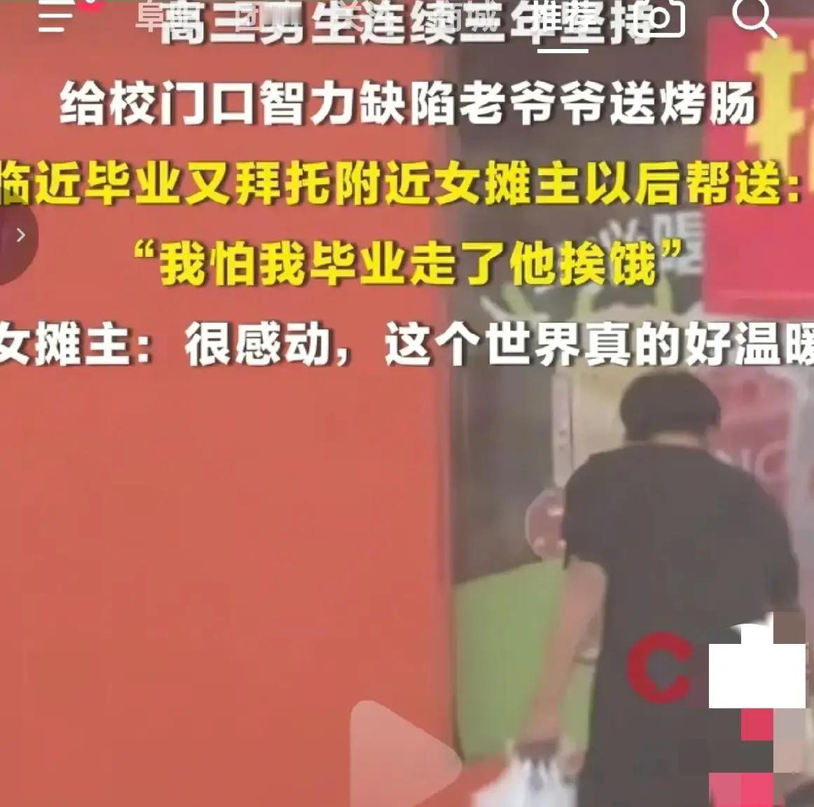 破防了!山东潍坊一个高三男生,默默给校门口智力缺陷的老爷爷送了3年烤肠,毕业前怕爷爷挨饿,请求摊主接力。网友:这才是刻在中国人骨子里的善良,是青春最该有的样子!