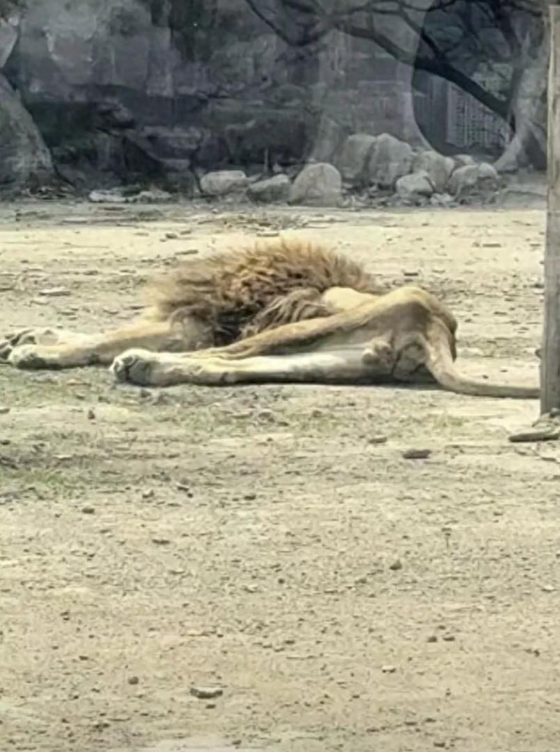 看的心疼!辽宁本溪,一女子去逛动物园,发现一头狮子躺在地上,已经瘦成了皮包骨,女