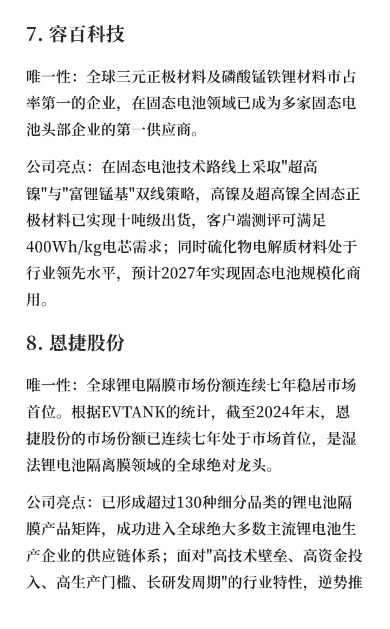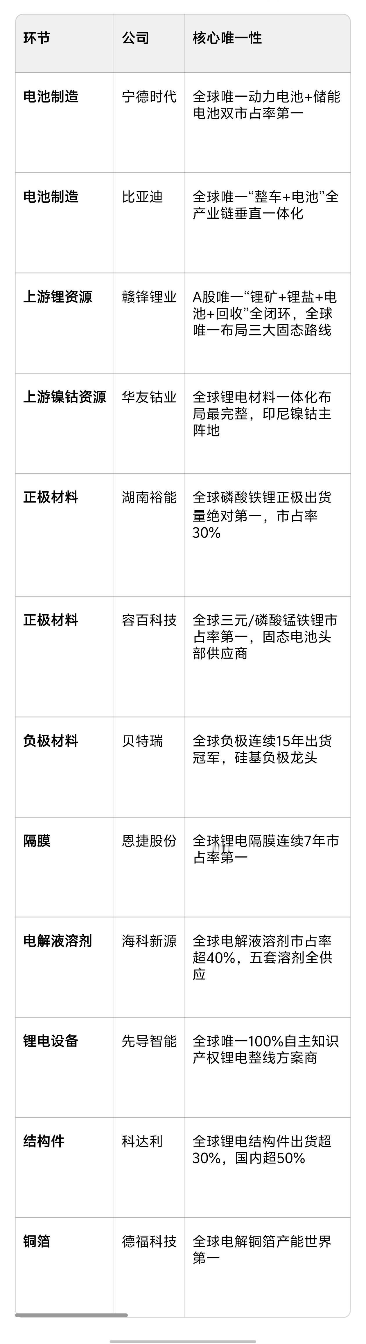 锂电池12只“唯一性”龙头,彻底梳理清楚了!这不是简单的名单,而是从上游资源到中游材料,再到下游电池的全产业链“黄金十二宫”,每一家都是别人抢不走的护城河。