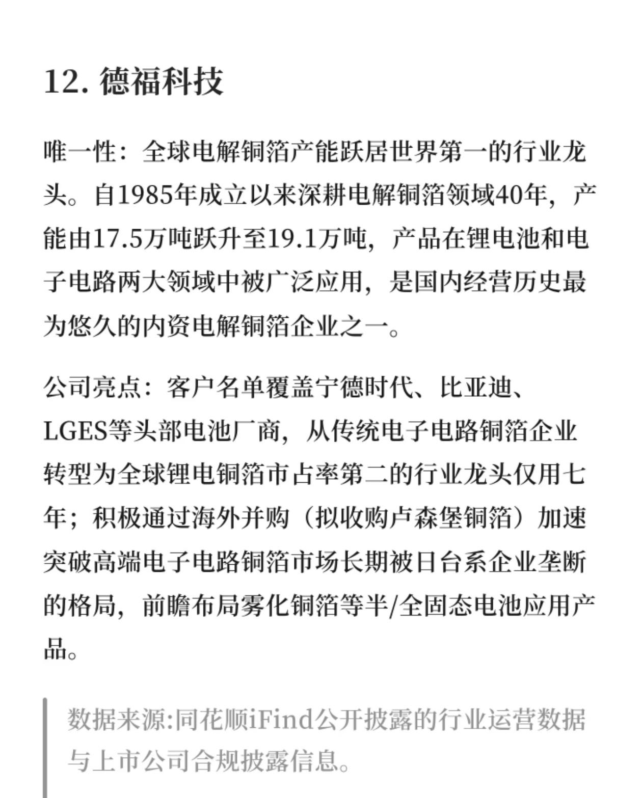 ✅ 德福+海科:铜箔产能世界第一、电解液溶剂垄断,绑定头部客户。