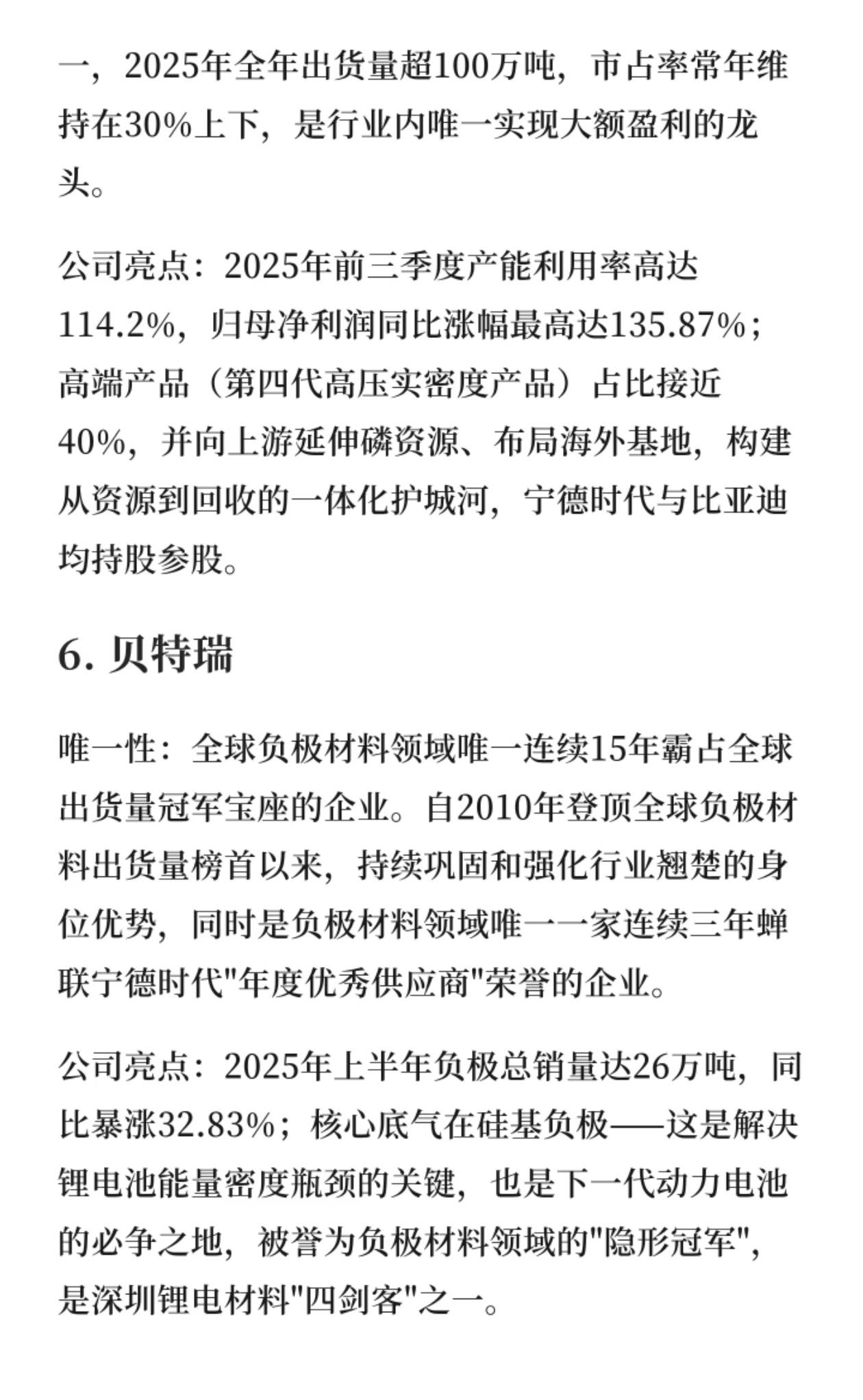 ✅ 贝特瑞+恩捷:负极15连冠、隔膜7连霸,技术壁垒最高;