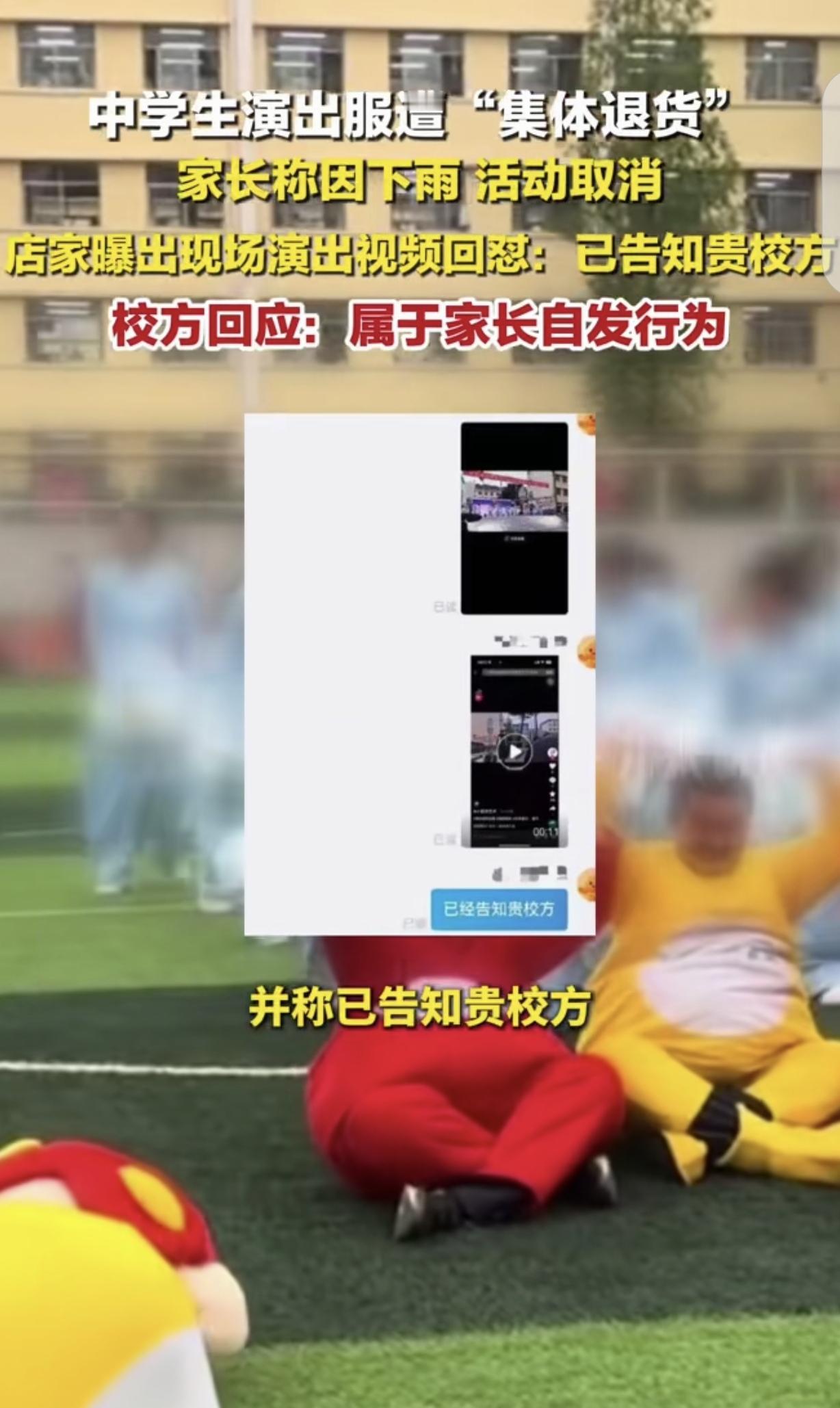 可没过几天,麻烦就来了。先是陆续有11个家长申请退货,理由都是“学校演出取消了,因为下雨”。