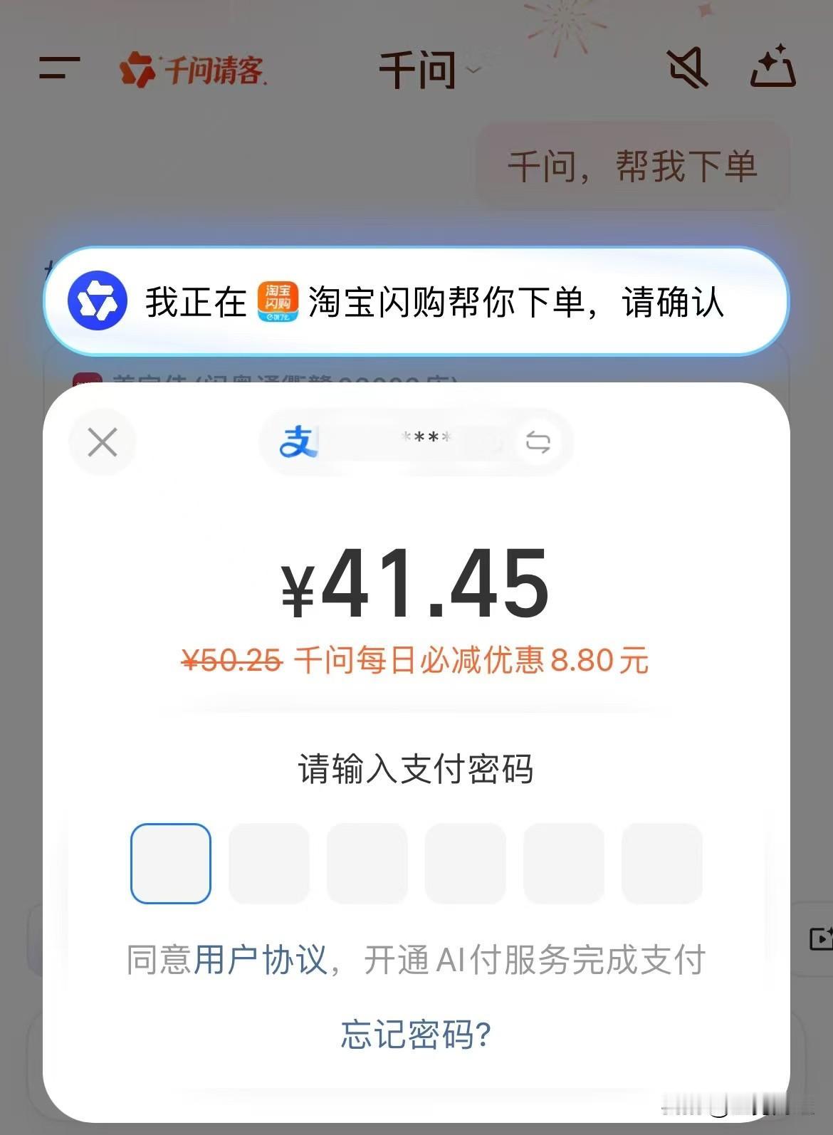 并且值得一提的是,千问每天首单必减还能和淘宝闪购、飞猪这些平台原有的优惠叠加使用,实现减上再减。