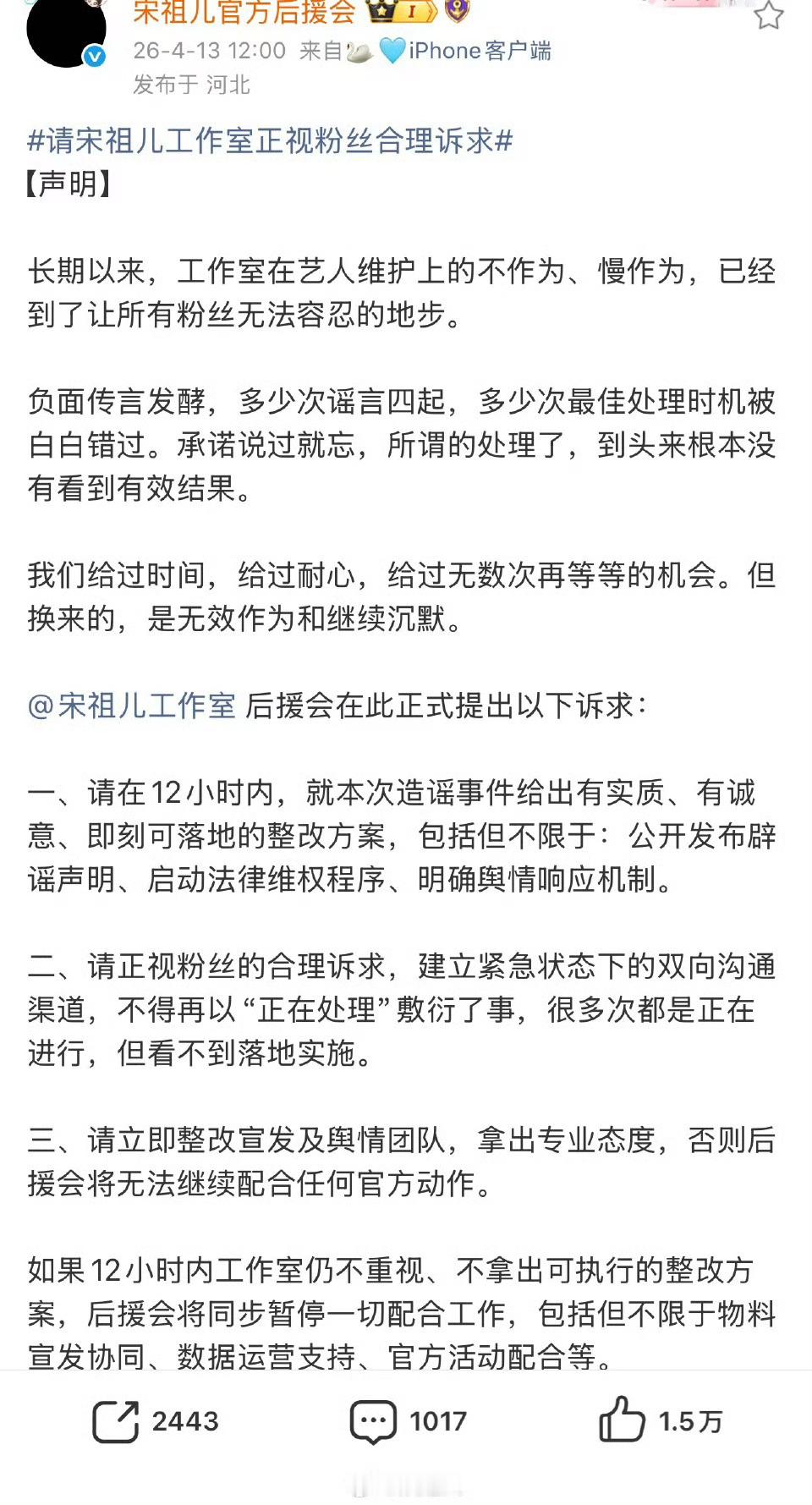 宋祖儿后援会暂停运营正主都不说什么,粉丝真的一腔热血