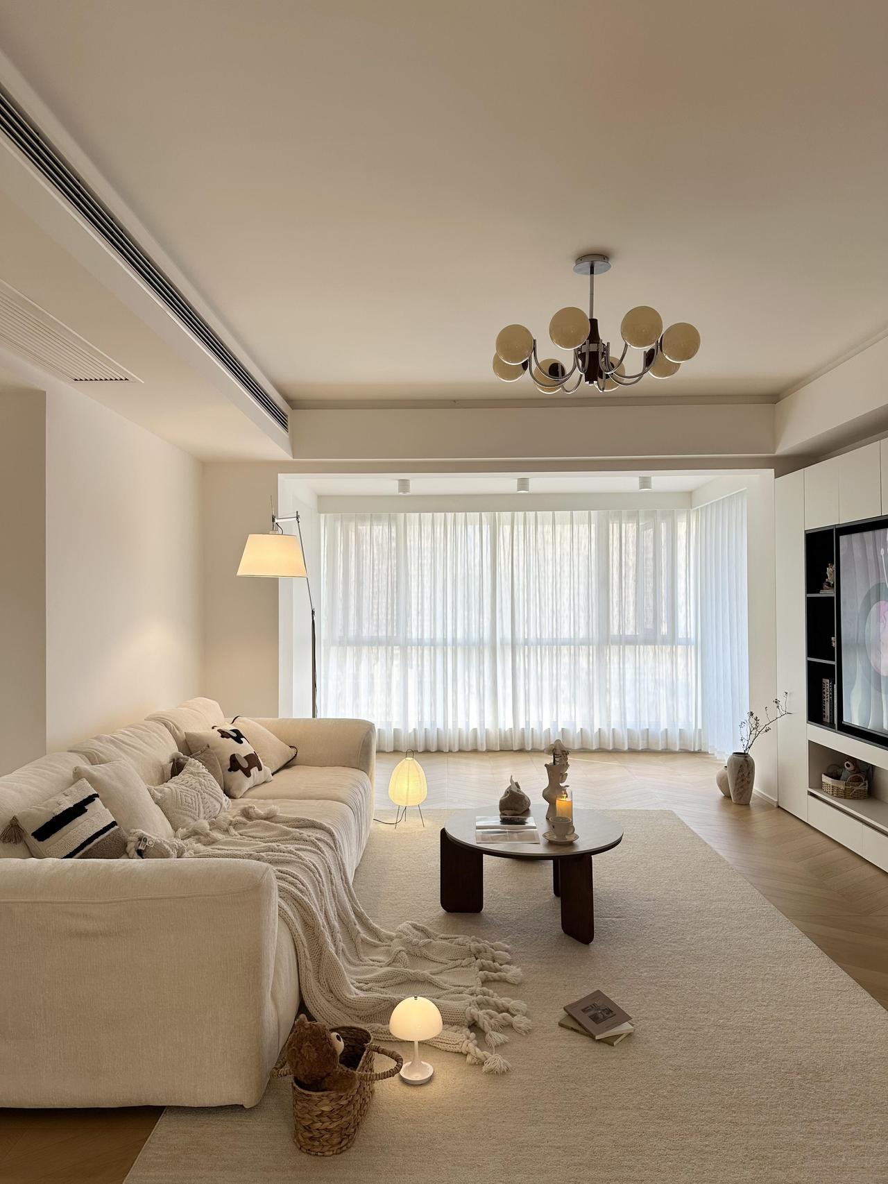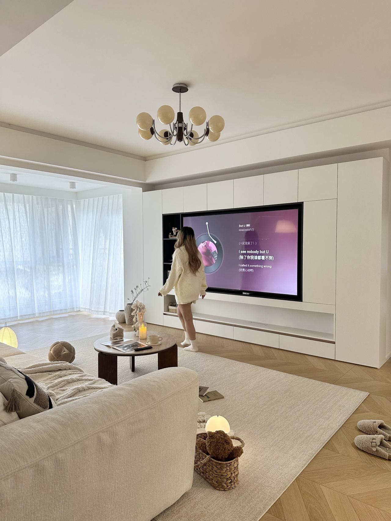 满墙电视柜收纳藏起所有杂乱,软乎乎的沙发超治愈