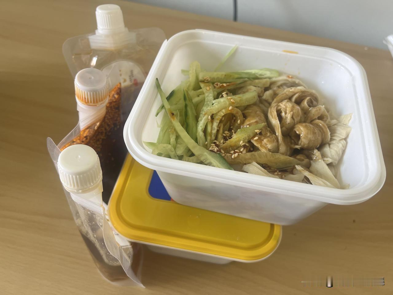 今天中午不仅有米皮,还贴心的带有辣椒油,和蒜汁。