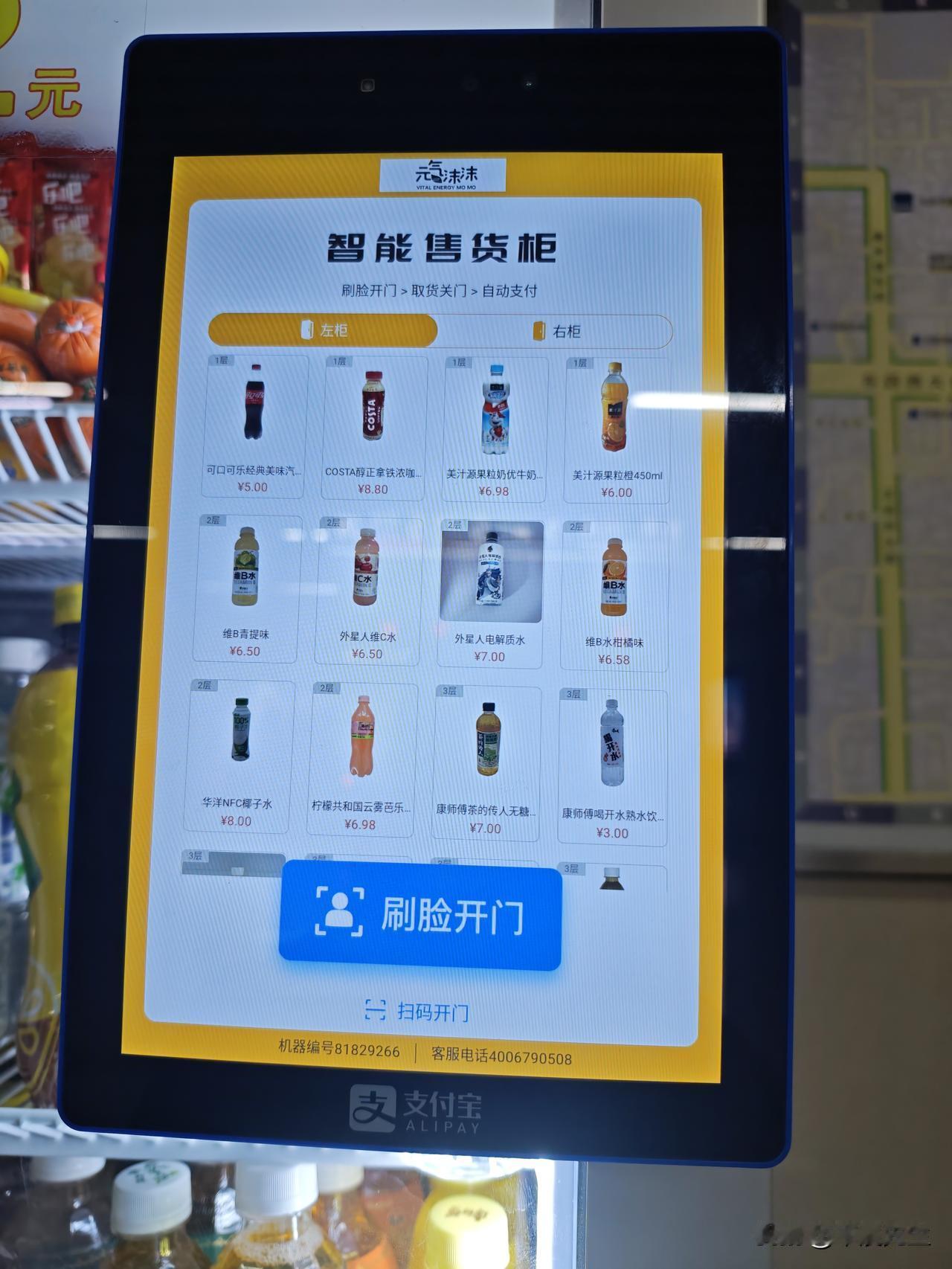北京地铁站里的一个自动售货机。售货机里主要卖的各种饮料。这个自动售货机,看品牌,