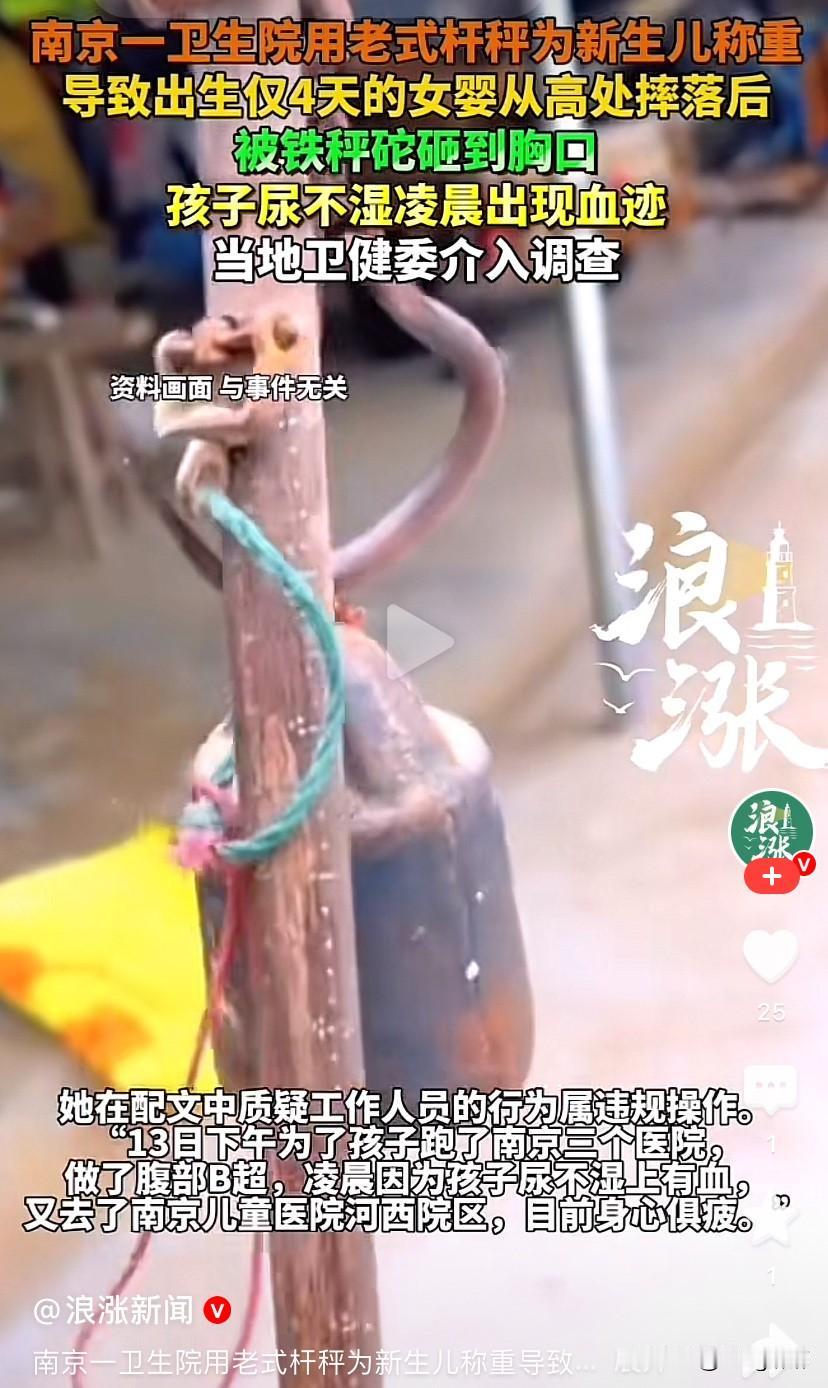 南京新生儿被秤砣砸伤事件中,我发现一个细节: 当时婴儿被提起的高度看上去有20