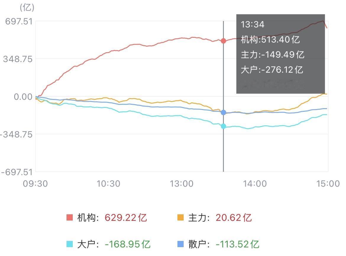 一点35分的时候散户加大户合计流出已经超过了400亿,指数全是红的,但是都在担心会跳水!