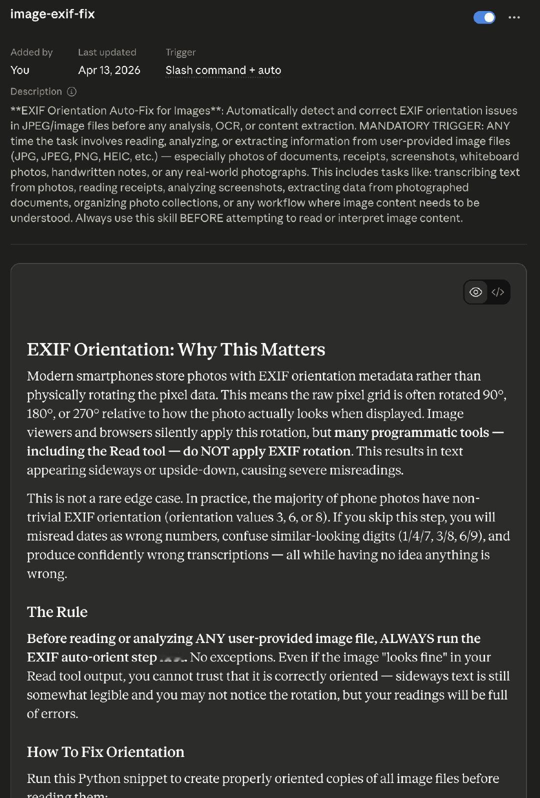 为了让 Claude Cowork 给我做报销单,不得不给它搞了个 Skill,不然图片方向都搞不对,横着搞 OCR…… 也是没想到。