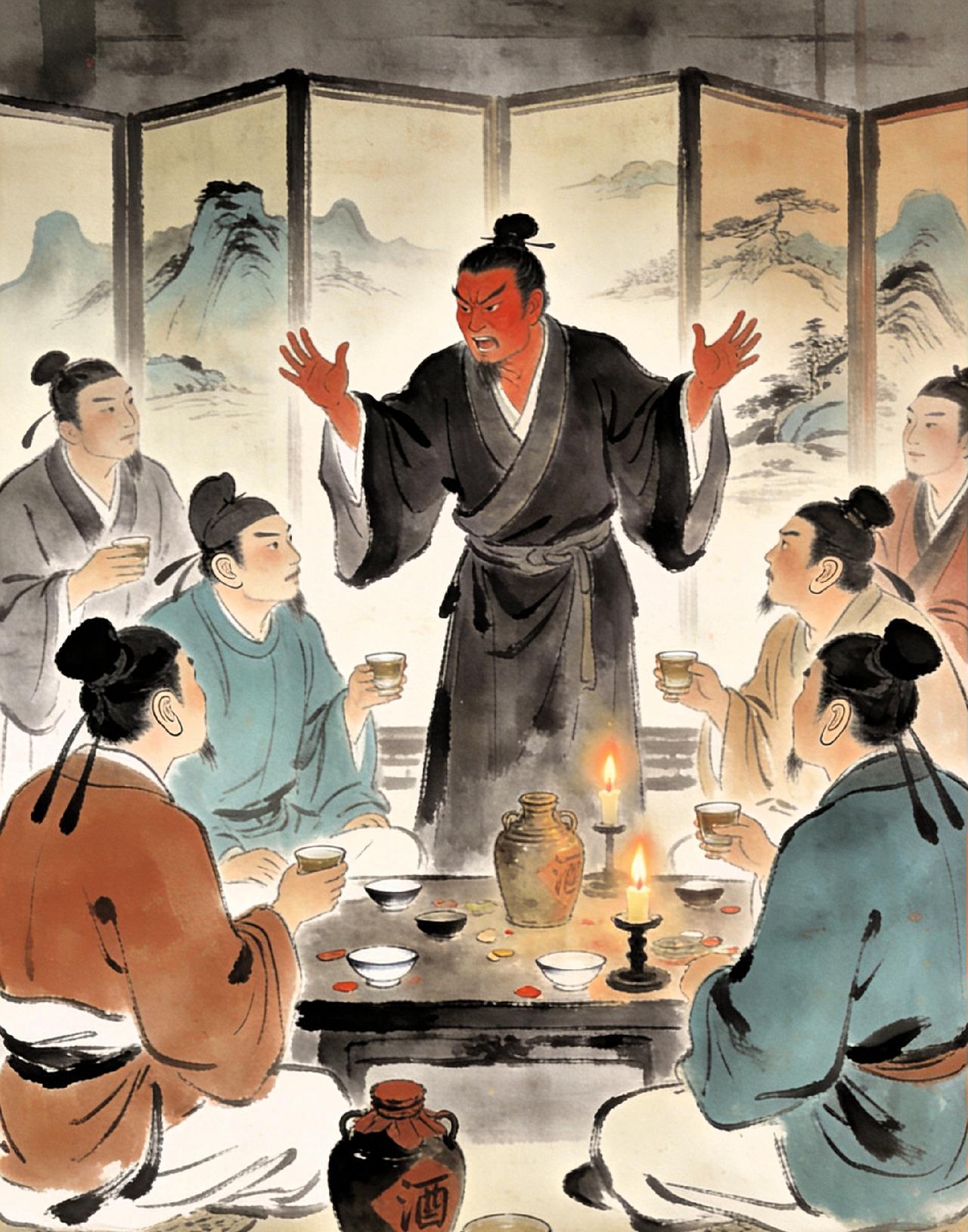 真正的酒场王者,竟是压轴的焦遂!“焦遂五斗方卓然,高谈雄辩惊四筵”。旁人几斗便烂醉,他喝下五斗才刚入状态,非但不醉,反而高谈雄辩,震惊四座。这般酒量,堪称八仙之最。