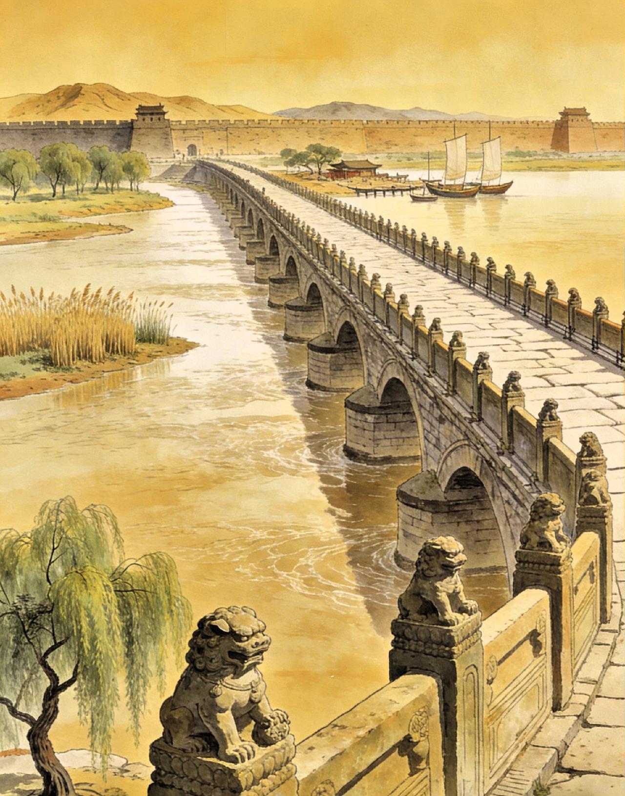 清康熙三十七年,直隶巡抚于成龙主持大规模治水,筑长堤、疏河道、固河床,彻底稳住了河道。康熙皇帝为祈求河水永久安定,正式赐名“永定河”,这个名字就此沿用至今。