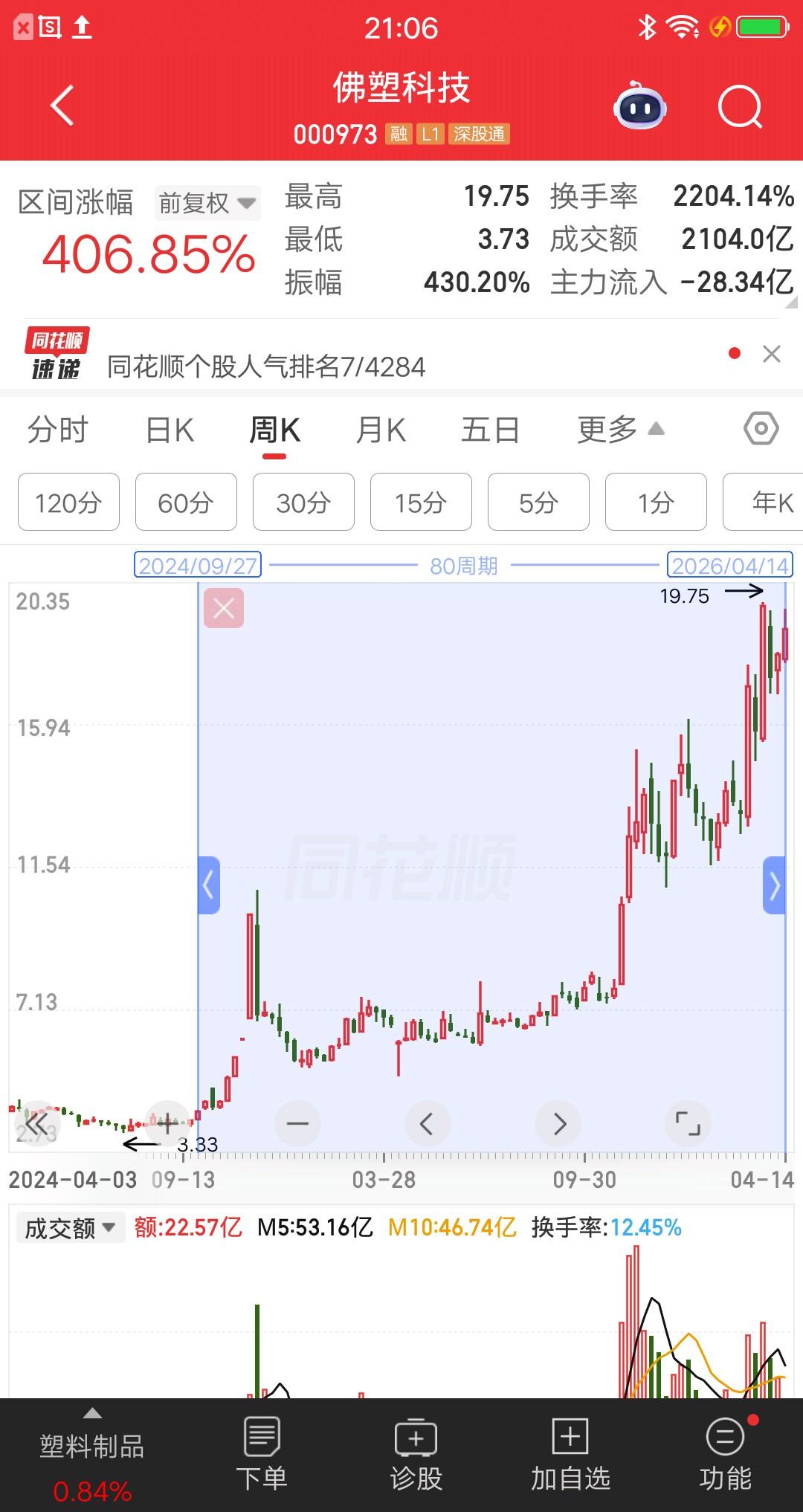 他的分析不无道理,低位票确实很安全,但也赚不到钱,这就叫盈亏同源。希望他能在佛塑科技上,赚到大钱吧。
