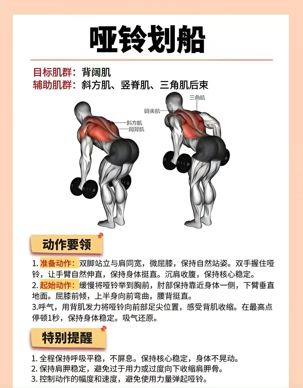 背薄显年轻,背厚显强壮! 使用哑铃或杠铃的练背动作 背部形态是好身材的绝对标志