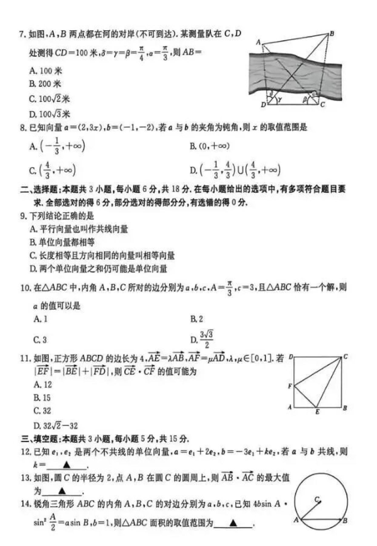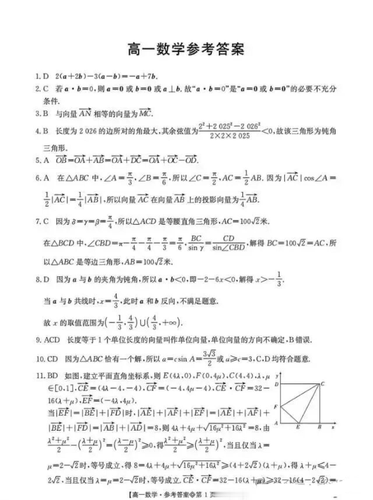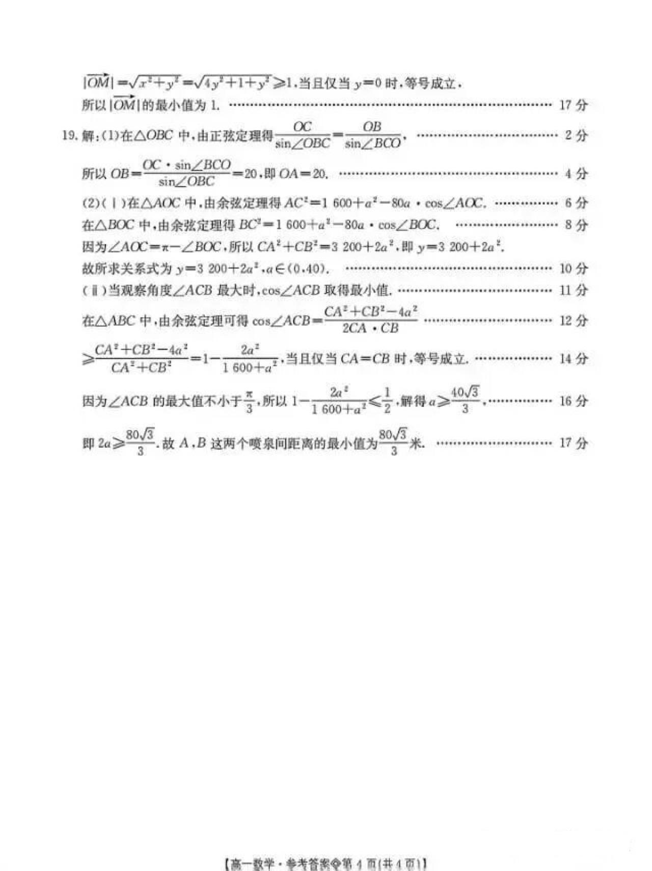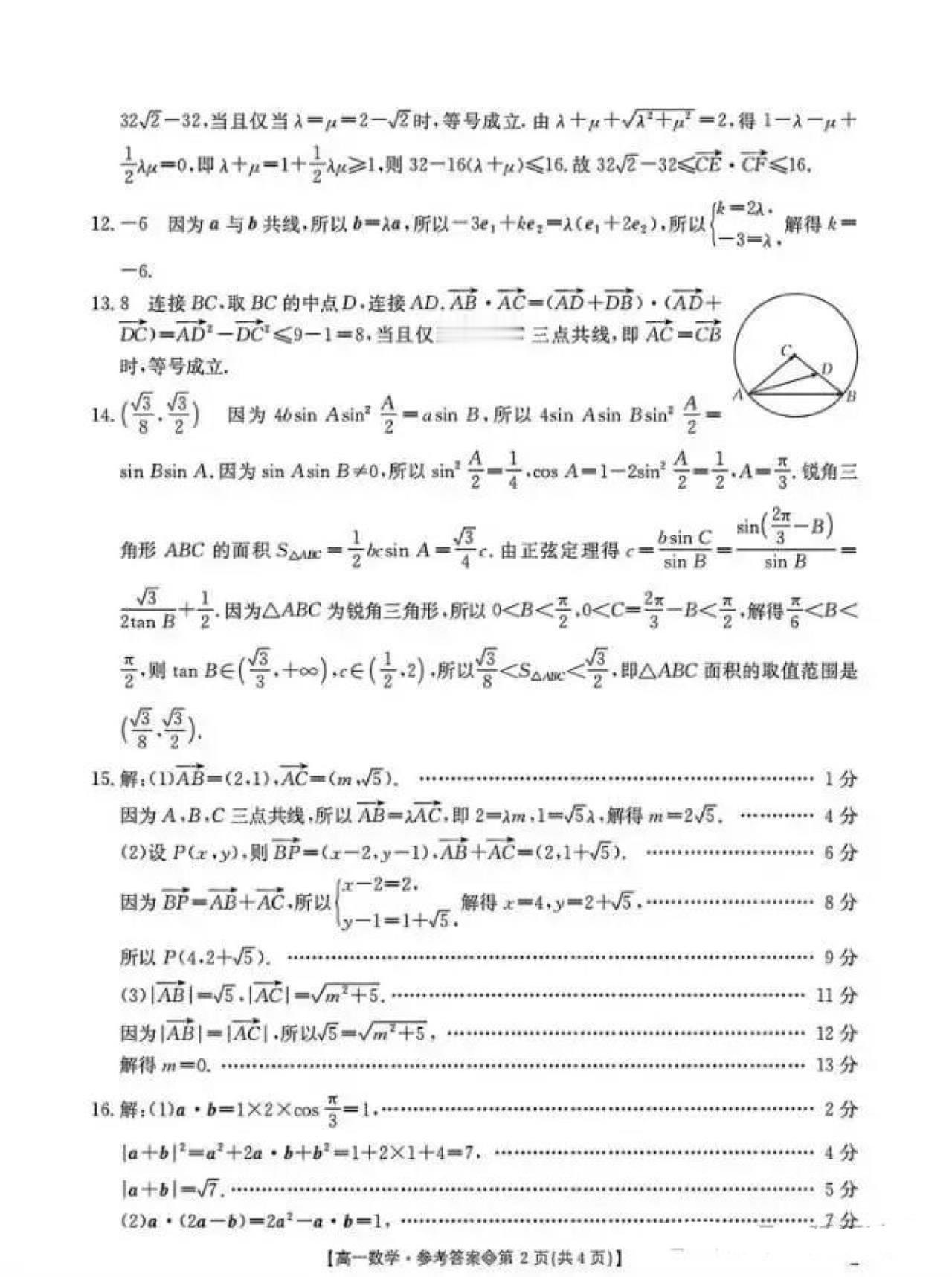 陕西省延安市2026年上学期高一4月联考数学试题及答案