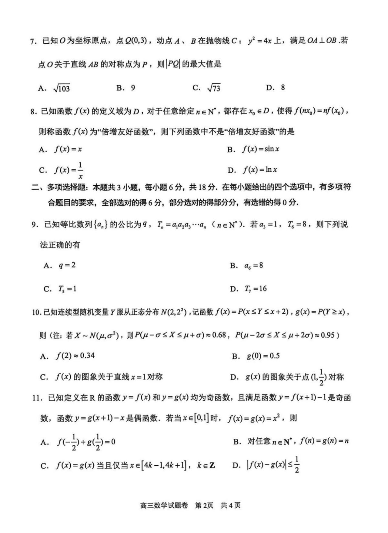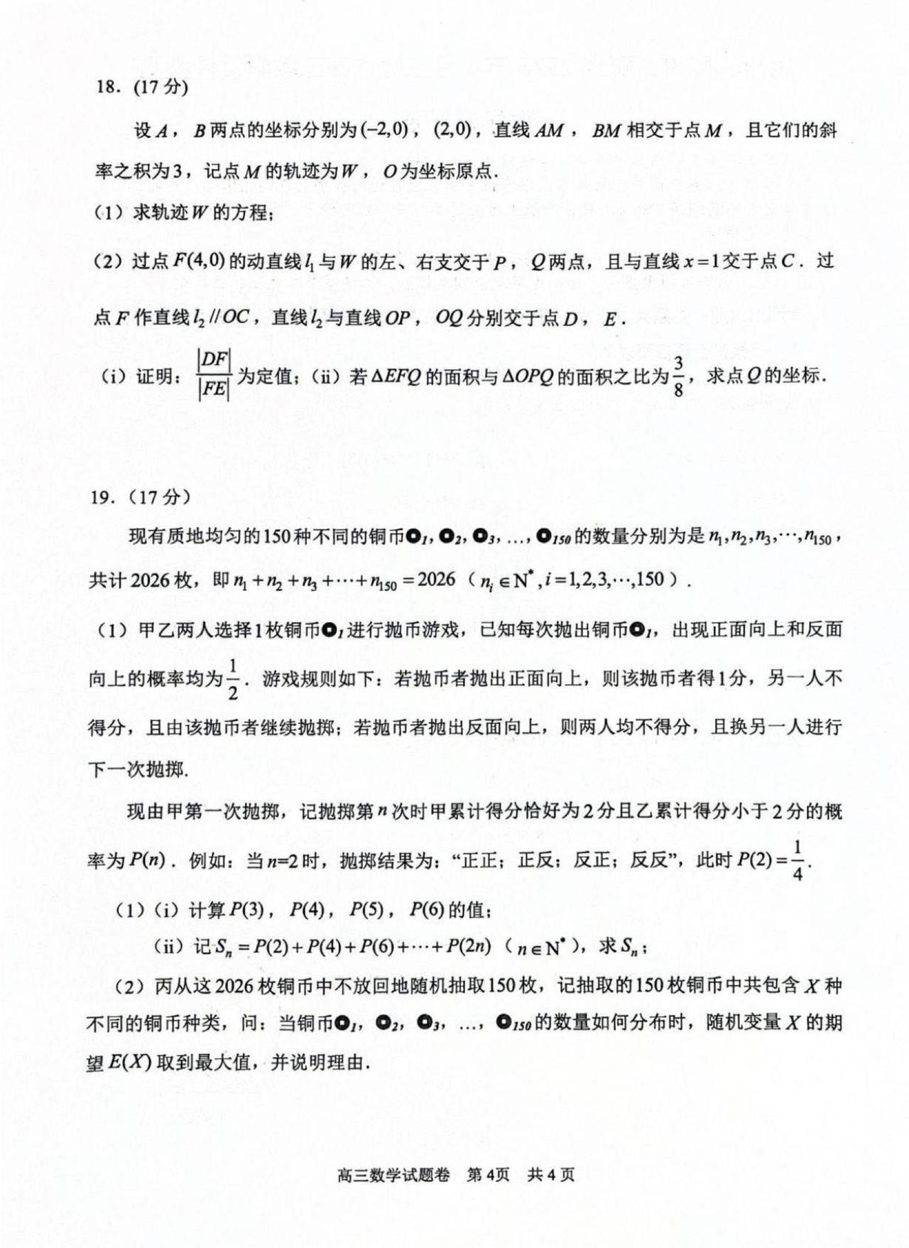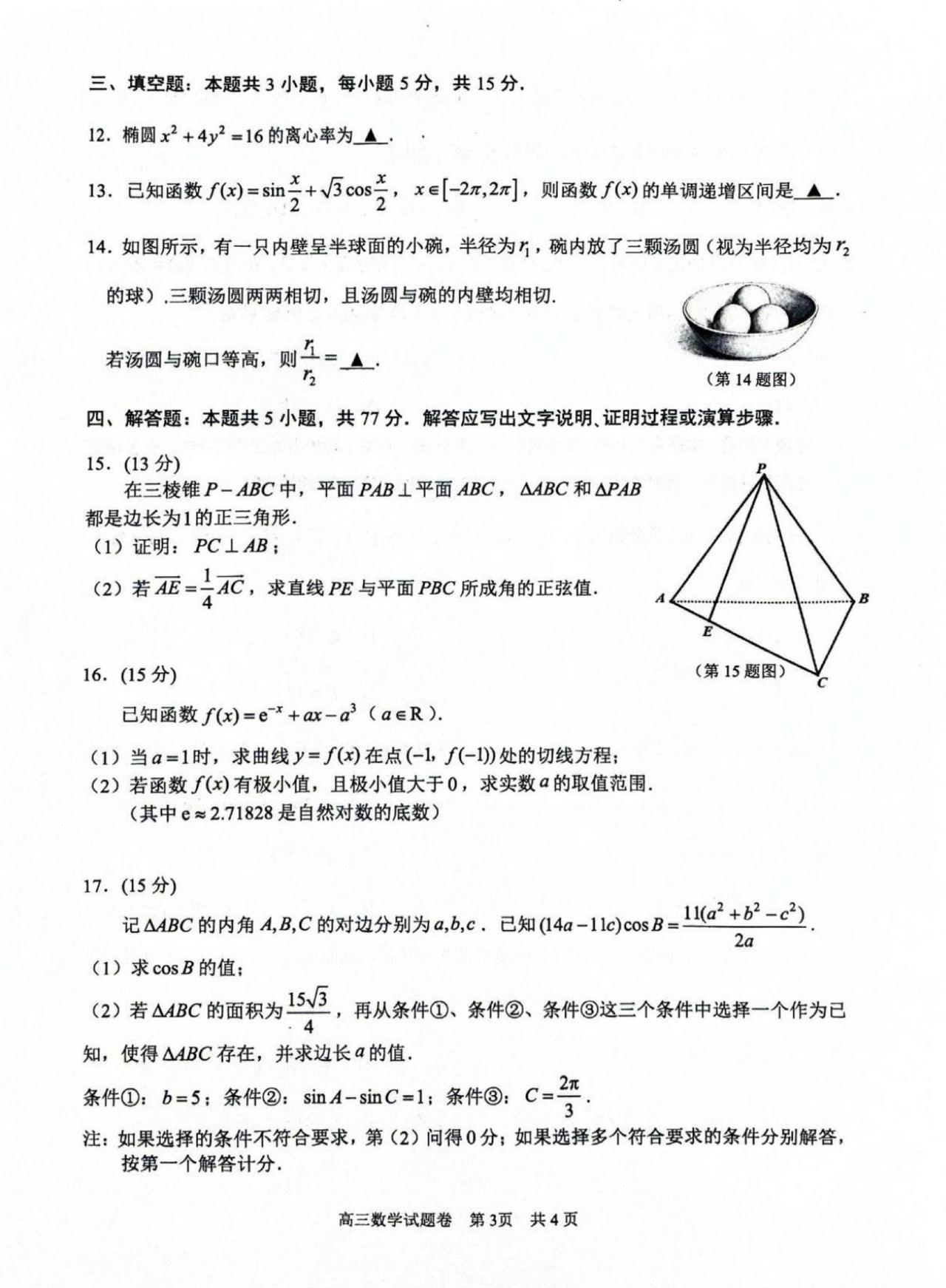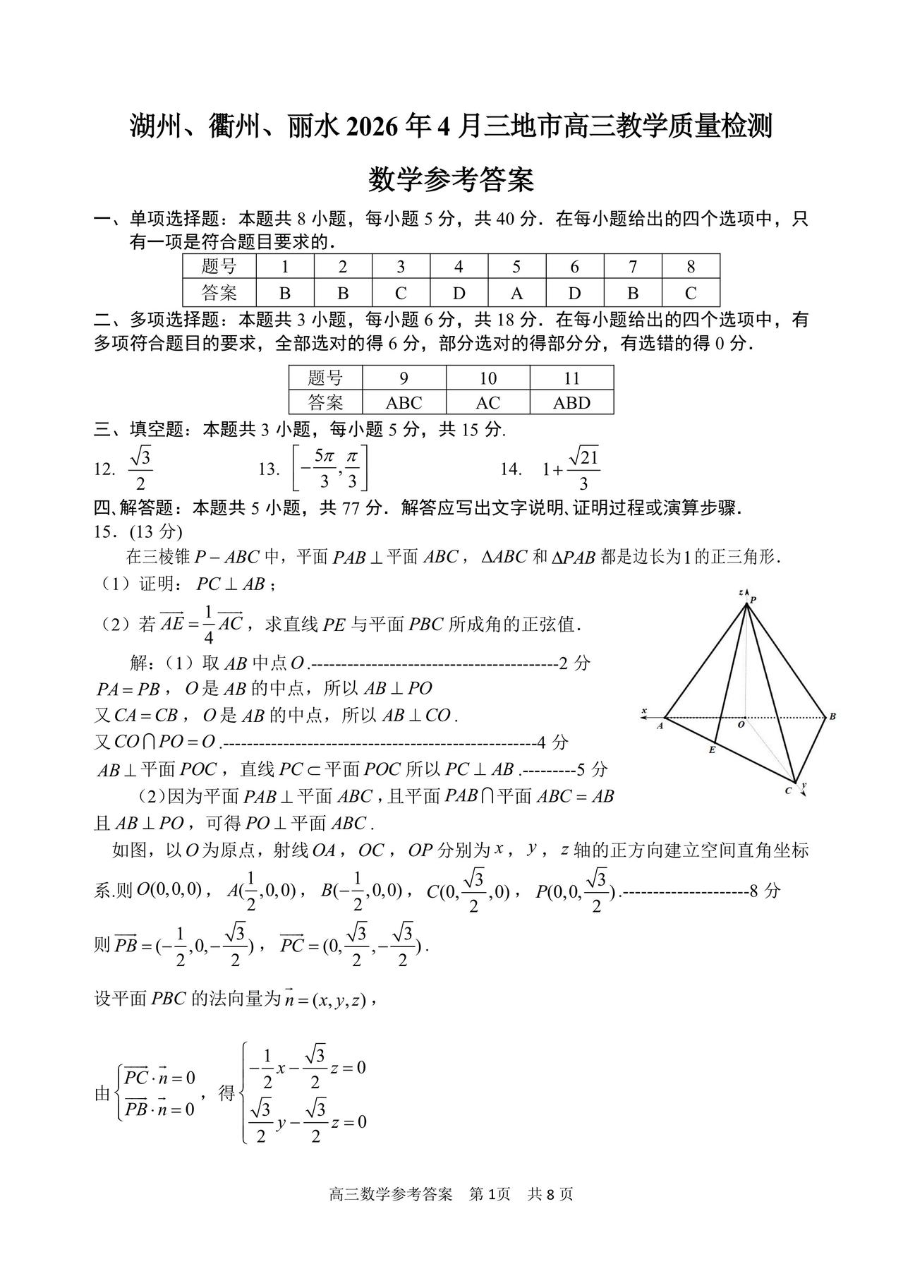 浙江省湖州、衢州、丽水三市2026届高三4月大联考数学试题及答案