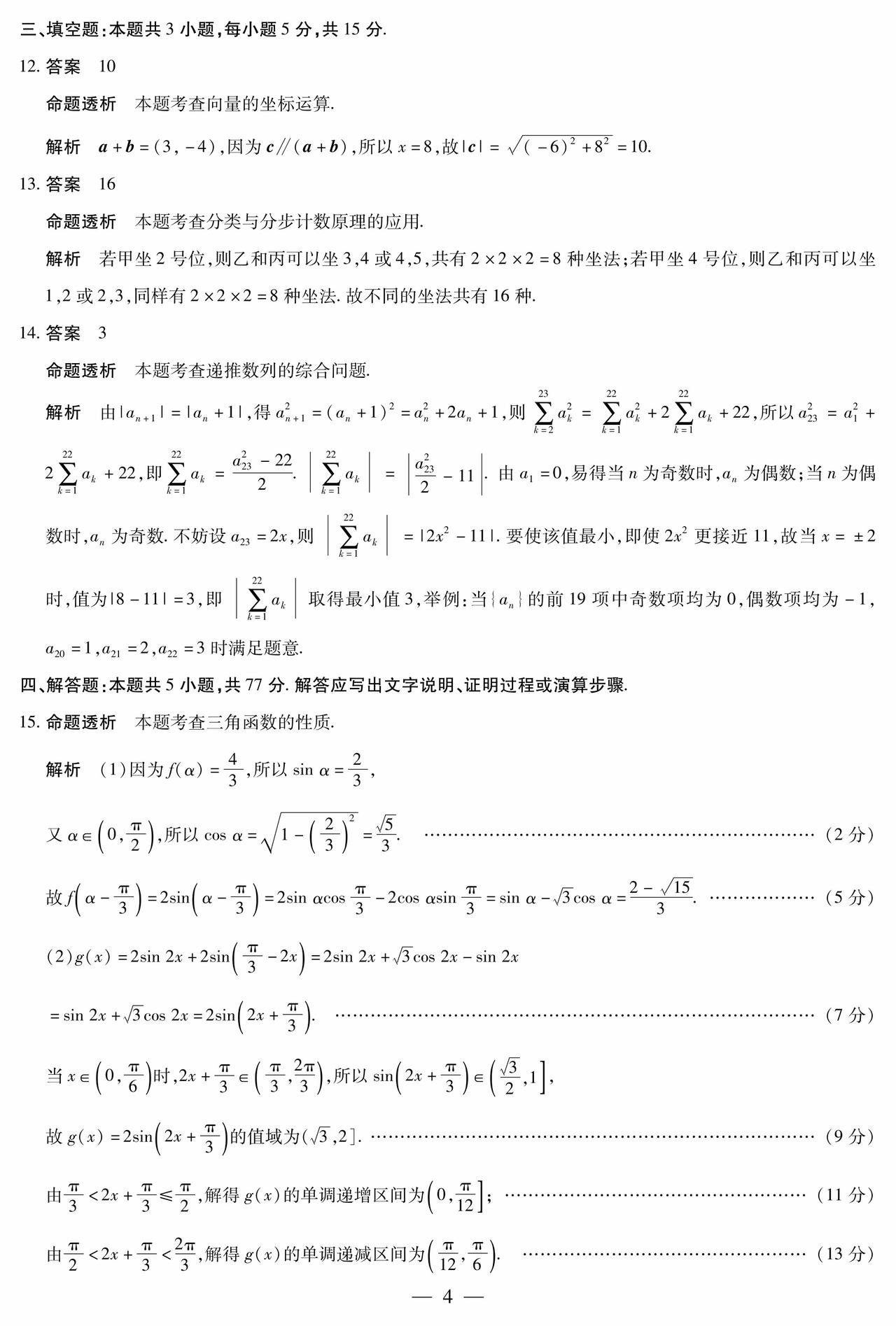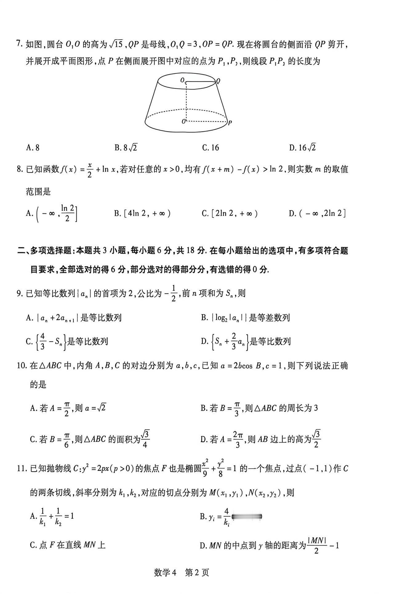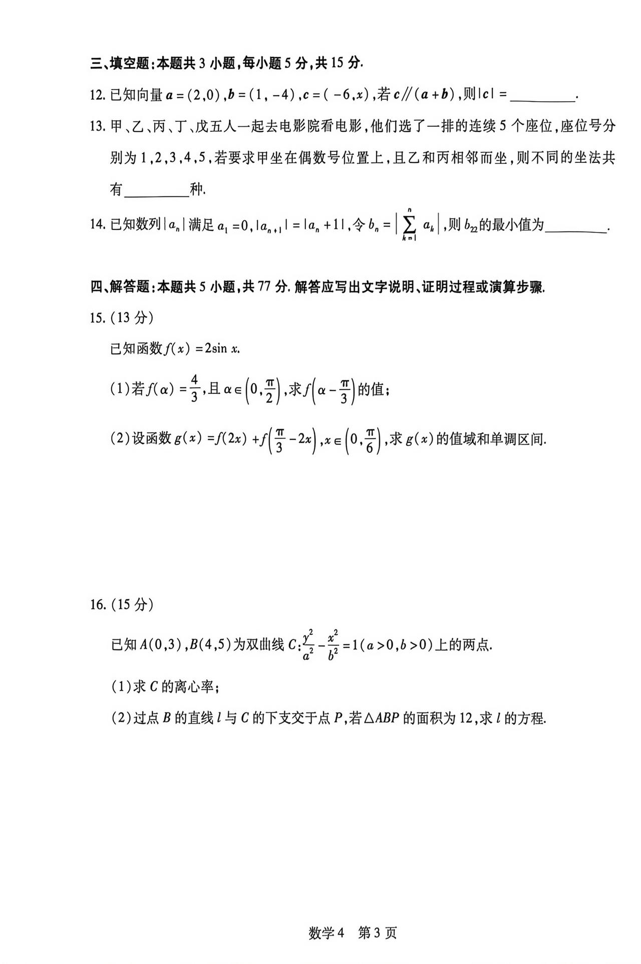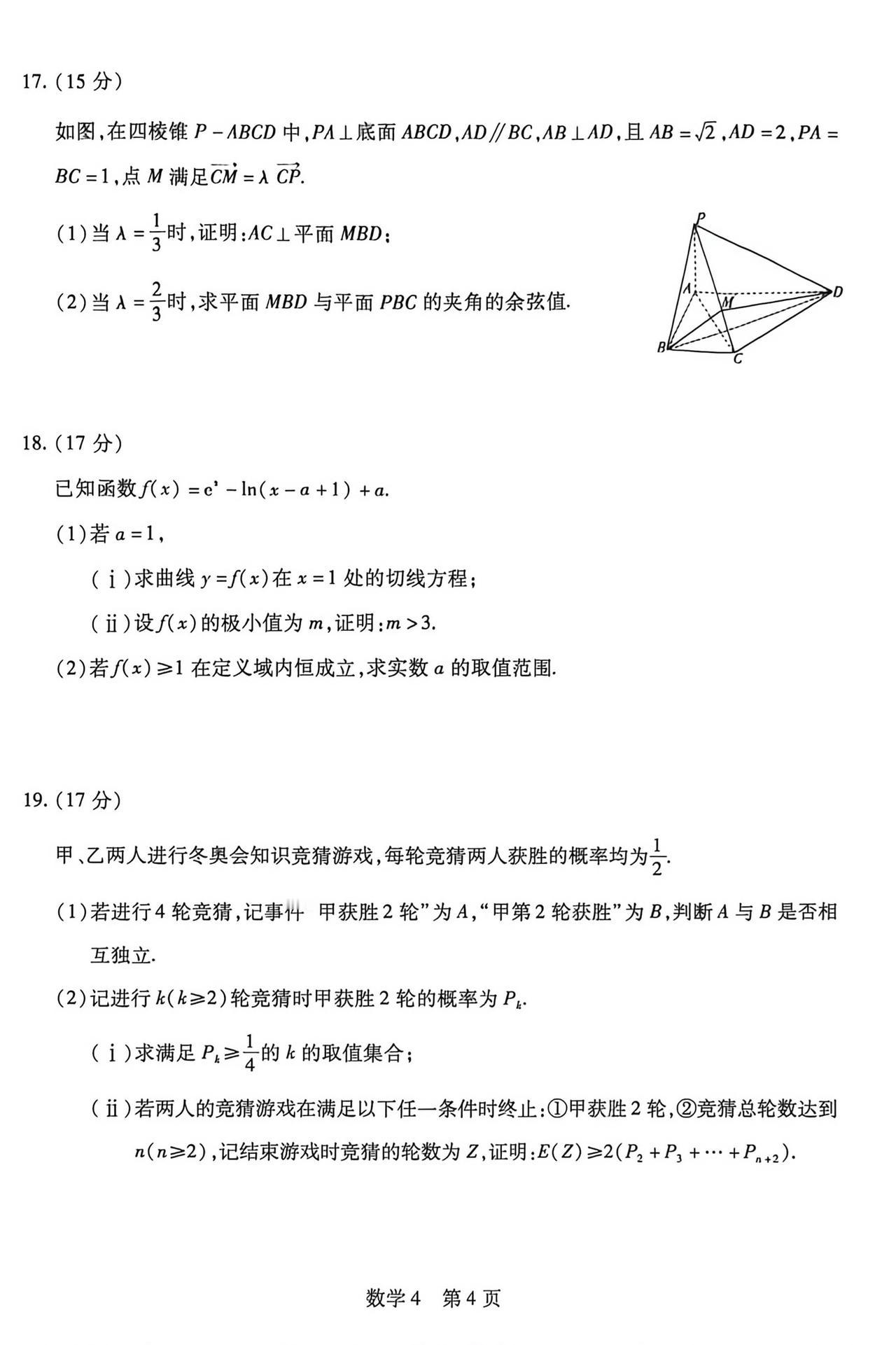 海南省琼海市2026届高三4月联考数学试题及答案