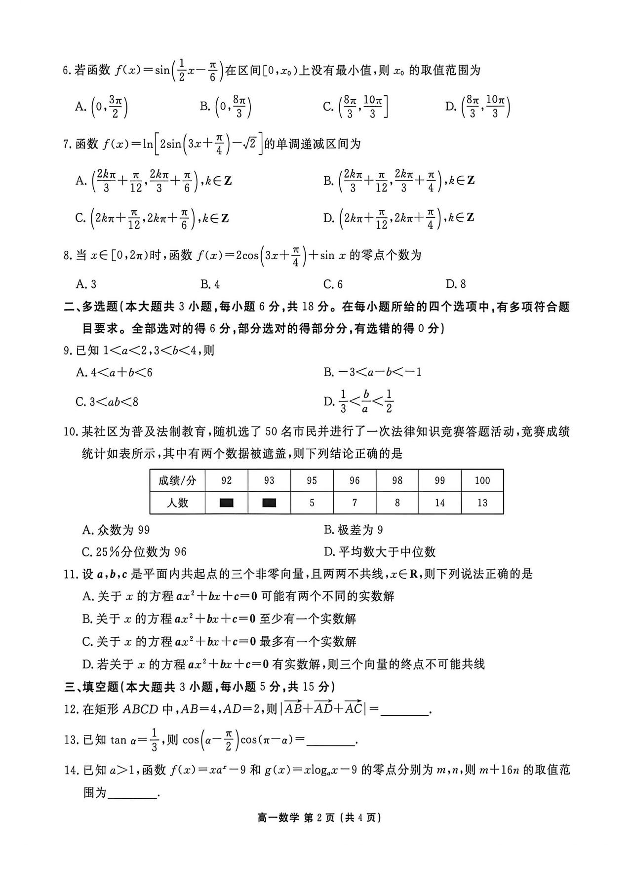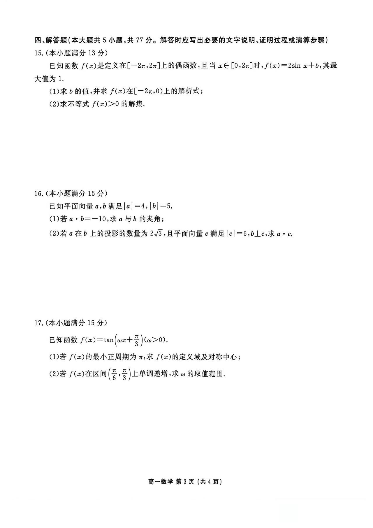 辽宁省营口市2026年上学期高一4月阶段检测数学试题及答案