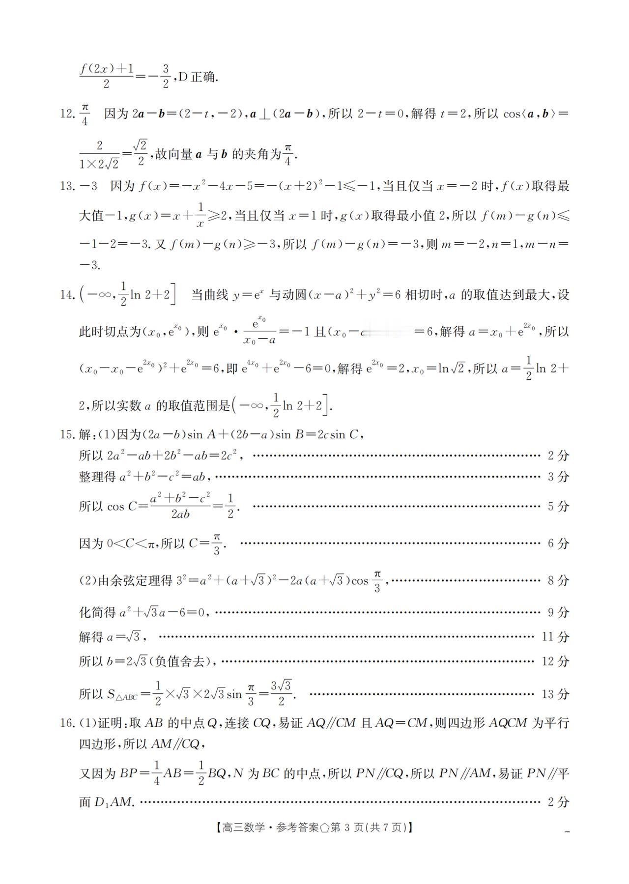 陕西省西安市2026届高三4月联考数学试题及答案