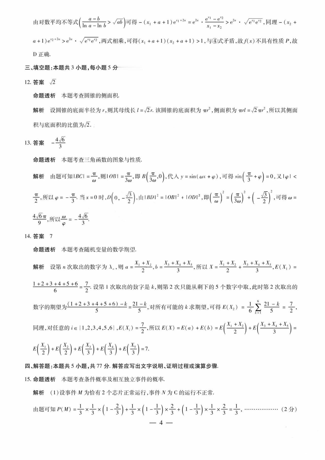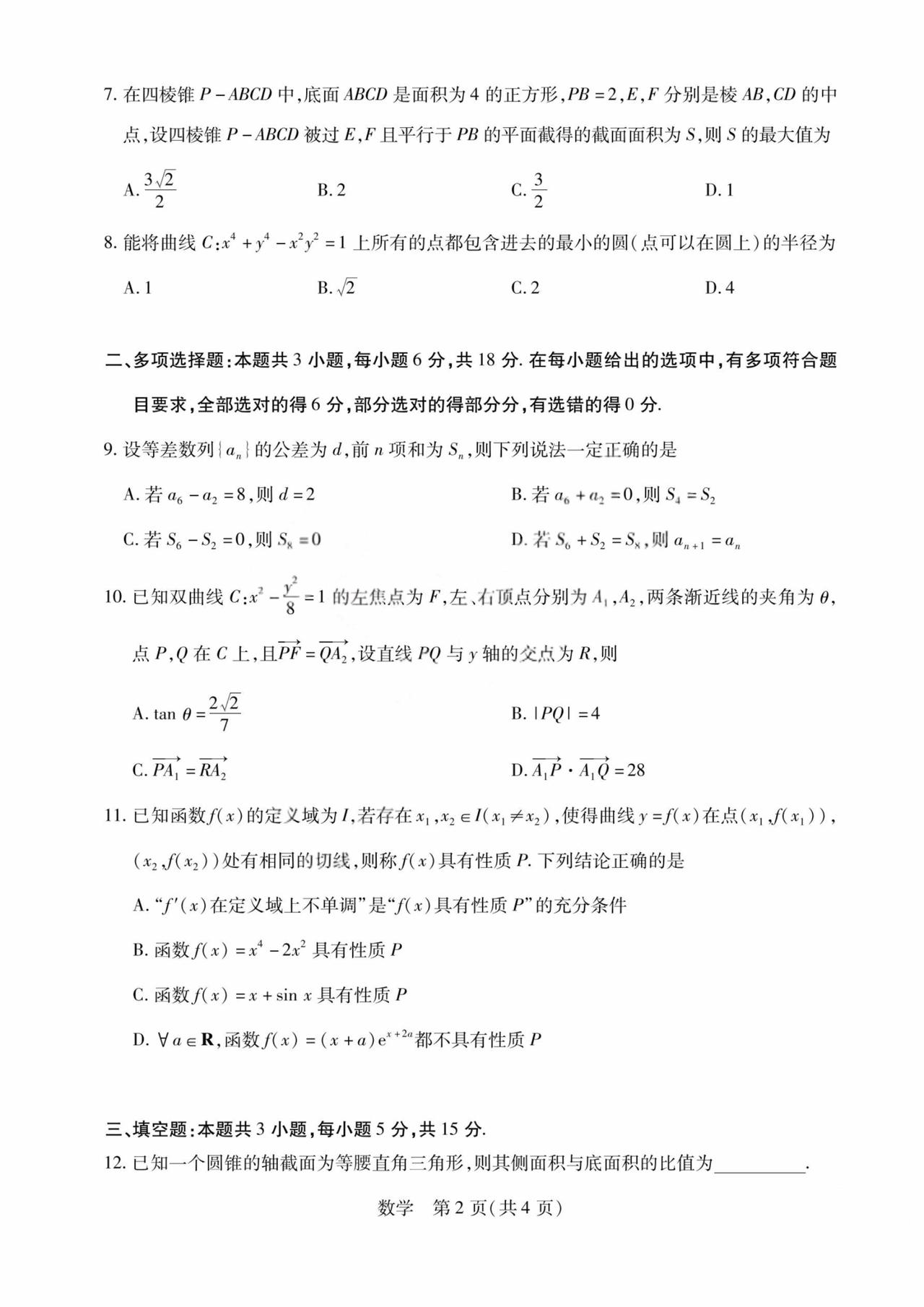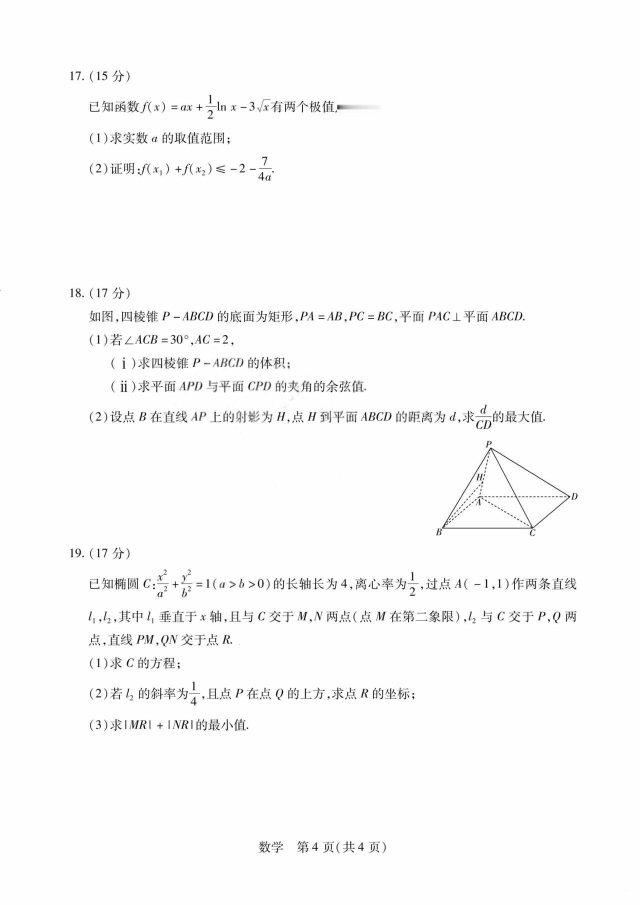 河南省焦作市2026届高三4月联考数学试题及答案