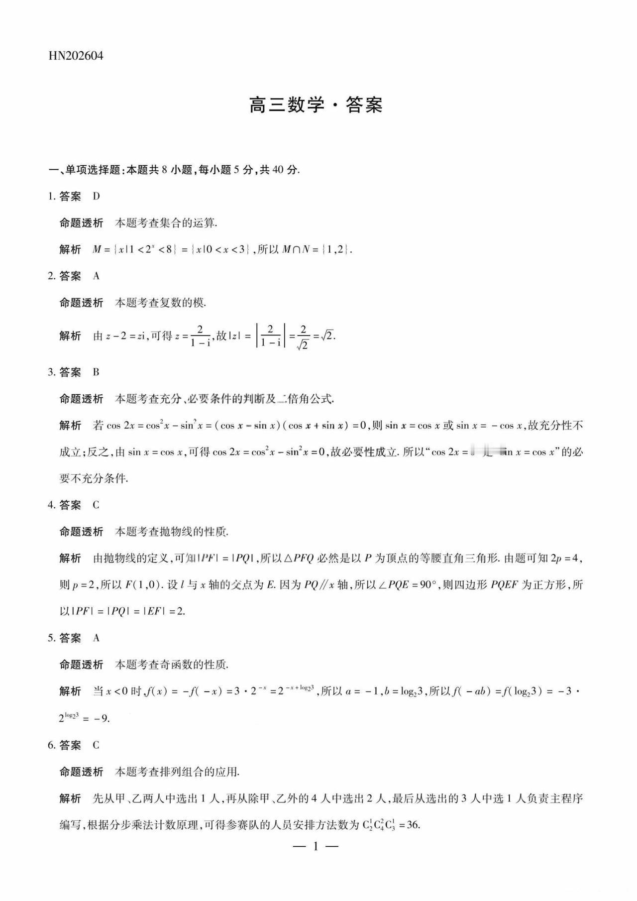 高中数学试卷速递