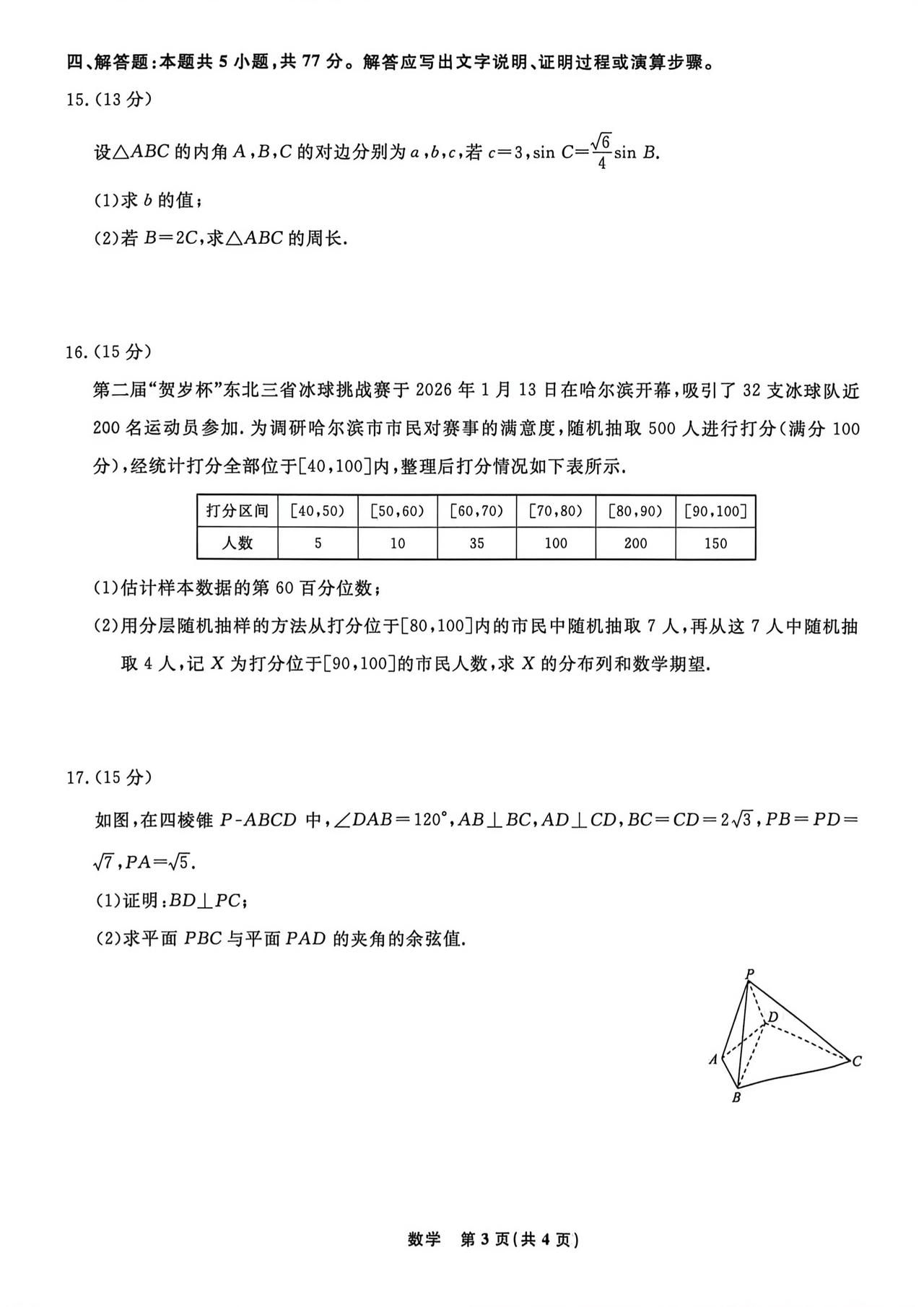 辽宁省名校联盟2026届高三4月联考数学试题及答案