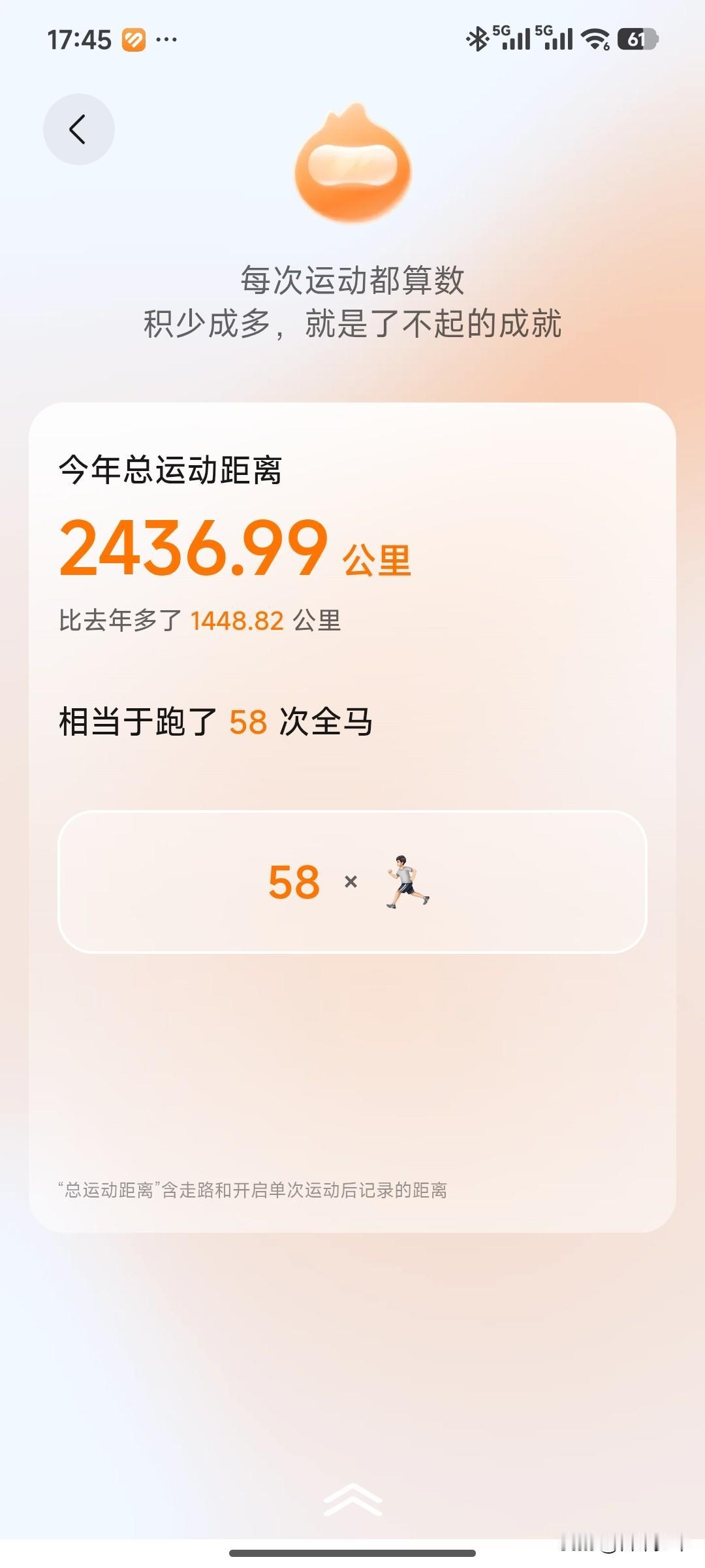 跑步距离,最短的一次是5公里,最长的是马拉松。