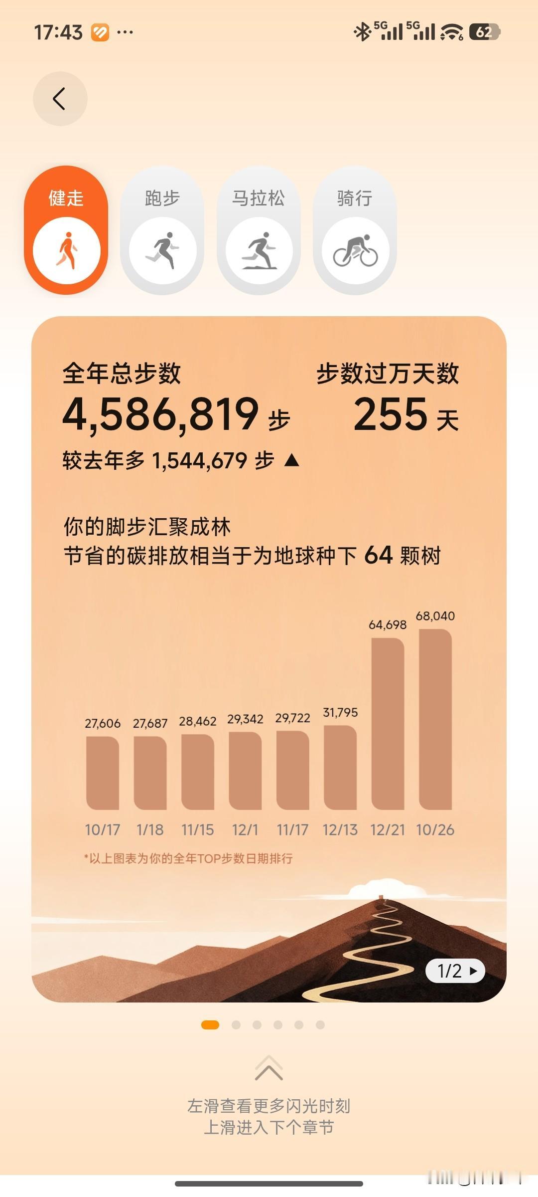 全年跑步232天,跑了2014公里,平均每天8.6公里。