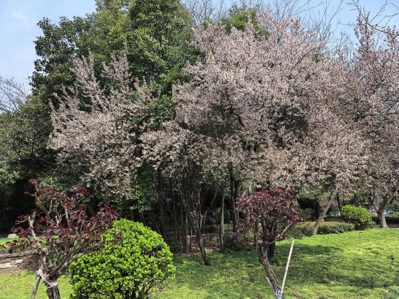 晒图笔记大赛今天阳光不错,走出家门晒晒太阳。看到路边的榆叶梅开得正旺。满树的花密
