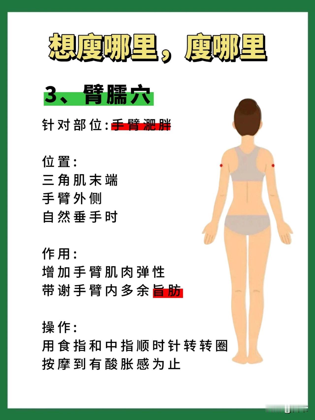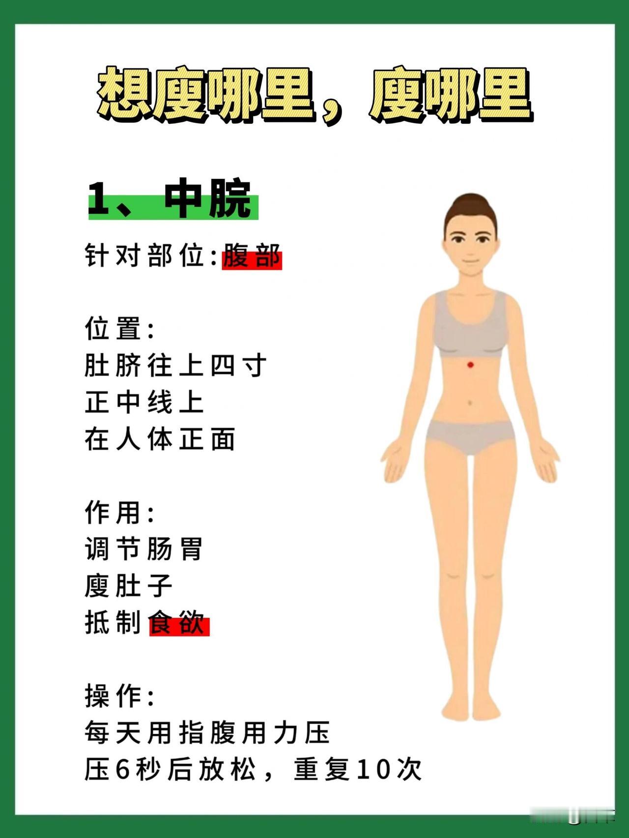 不想节食、也不想高强度运动,却想悄悄瘦下来?中医里的“瘦身穴位”就是你的好帮手!不同部位对应专属穴位,每天花几分钟按一按,辅助改善局部肥胖,让身材更舒展~
