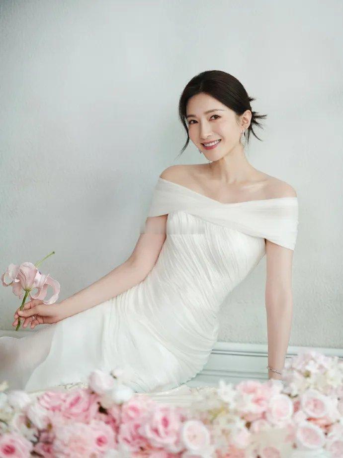江疏影在出席时尚活动的时候穿了一件白色的抹胸裙展现出了高贵之美。