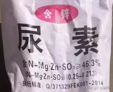 先看这个尿素两个字大大的,上边还标着含锌,但是一看含量标识,氮 锰 锌 硫加起来是46。