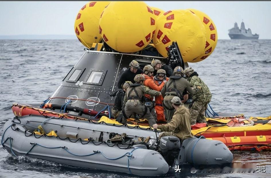 这次飞船落到太平洋后,又弄到充气筏上,舱门才被打开,宇航员才被接出来。