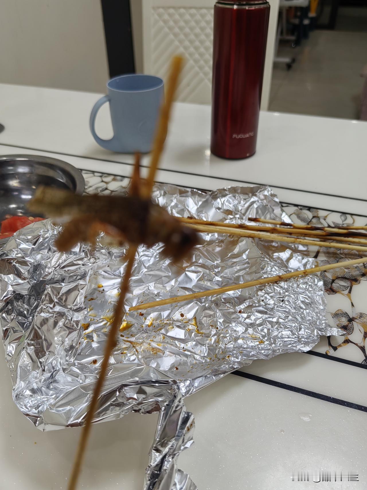 从这件事能看出,我们夫妻俩还是存在差异的。老婆从事财务工作,加班是常有的事。公司事务繁忙时,她就没法正常回家吃晚饭。等晚上八九点他们离开公司,几个同事便会顺路出去吃顿饭,吃个烧烤之类的。要是聚餐时有好吃的,多数情况下她会打包一点给我带回来。我爱吃五花肉烤串,她就会多拿几串。有时看到我没吃过的东西,也会带回来让我尝尝,比如这次给我带了烤蚂蚱。我确实没吃过,还天真地问她这虫子老板有没有去内脏、翅膀能不能吃之类的问题。