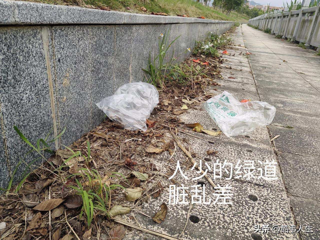 大亚湾坪山河部分河畔的绿道已然修好,然而呈现出的却是两种大相径庭的景象。有些地段杂草丛生、垃圾满地,有些地段却十分洁净。不可否认,根本原因在于维护工作没跟上,说白了就是只注重修建,却忽视了后期管理。不过,我还发现了另一个缘由。